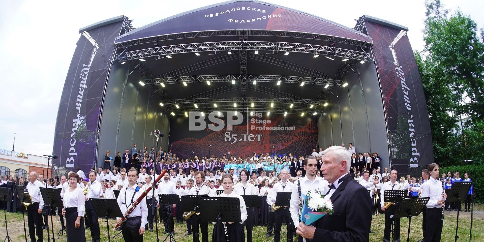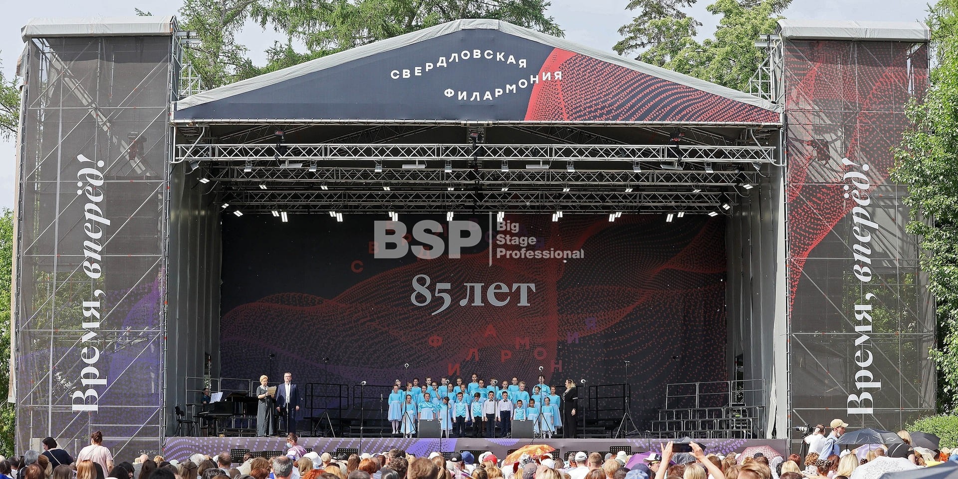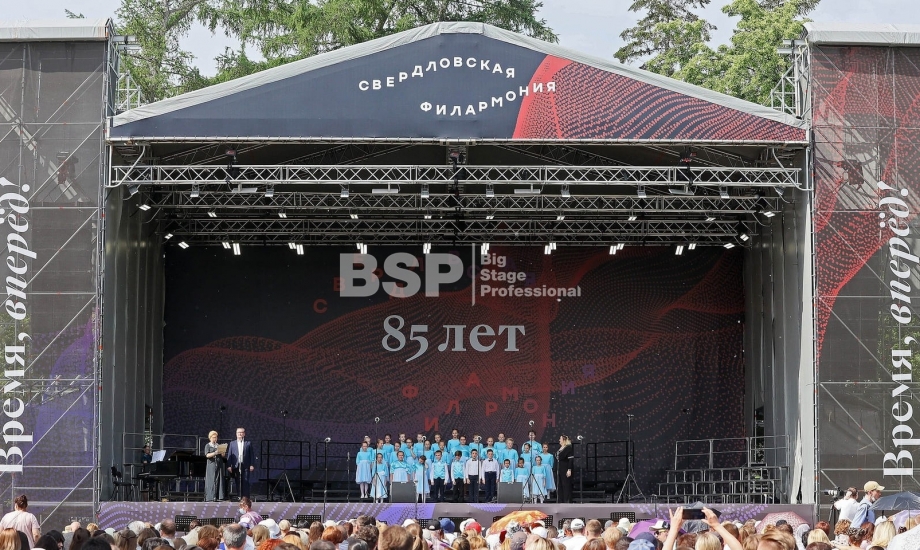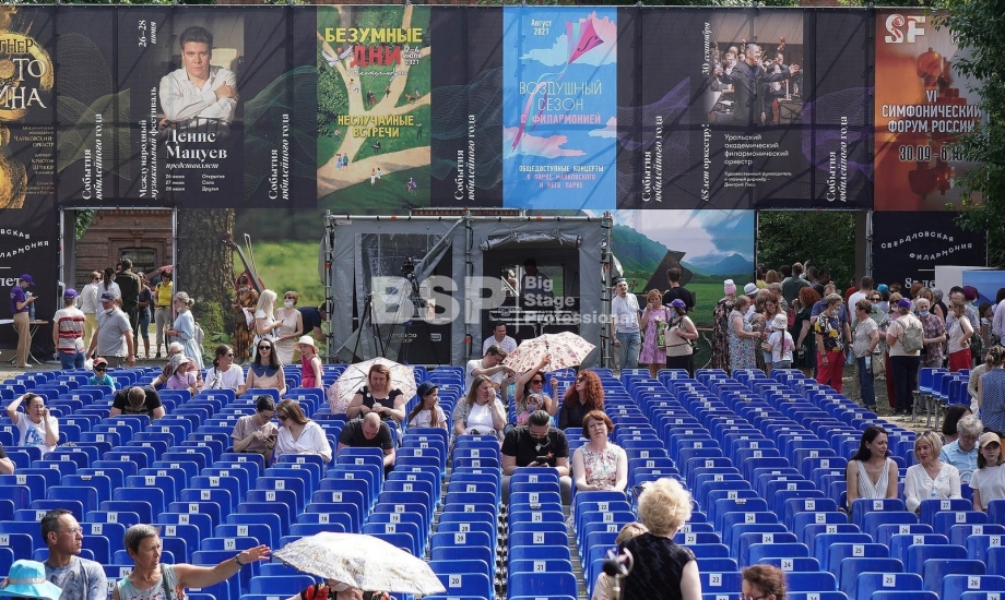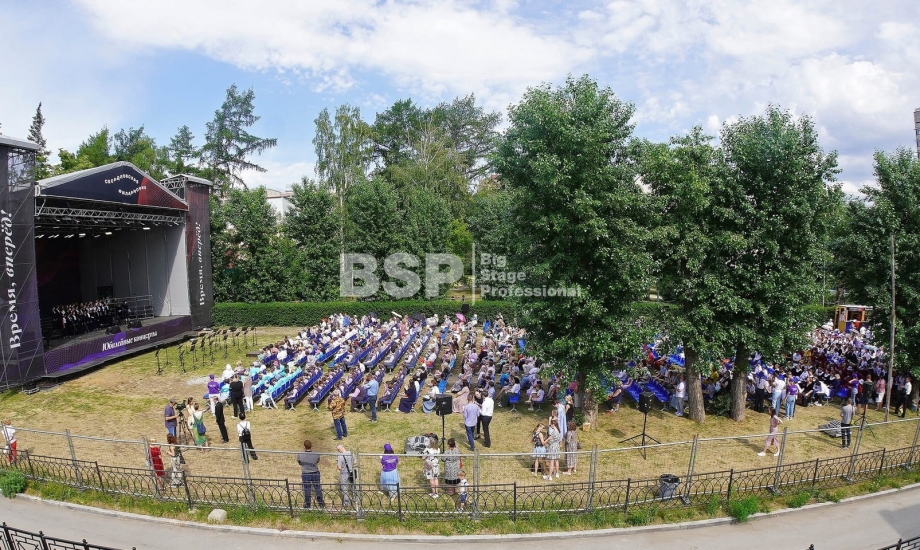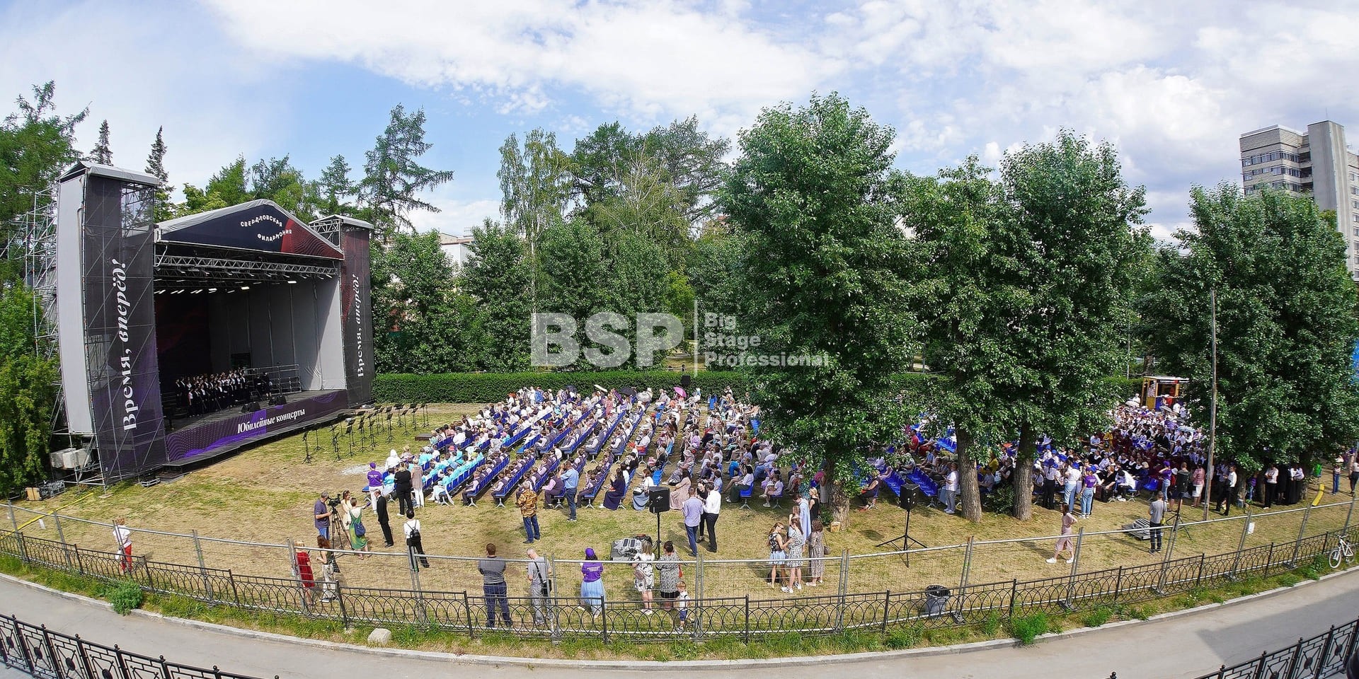Под открытым небом в Саду Вайнера мы построили большой брендированный сценический комплекс и входную группу. Поставили партер для зрителей, пультовую и оснастили мероприятие световым и звуковым оборудованием.