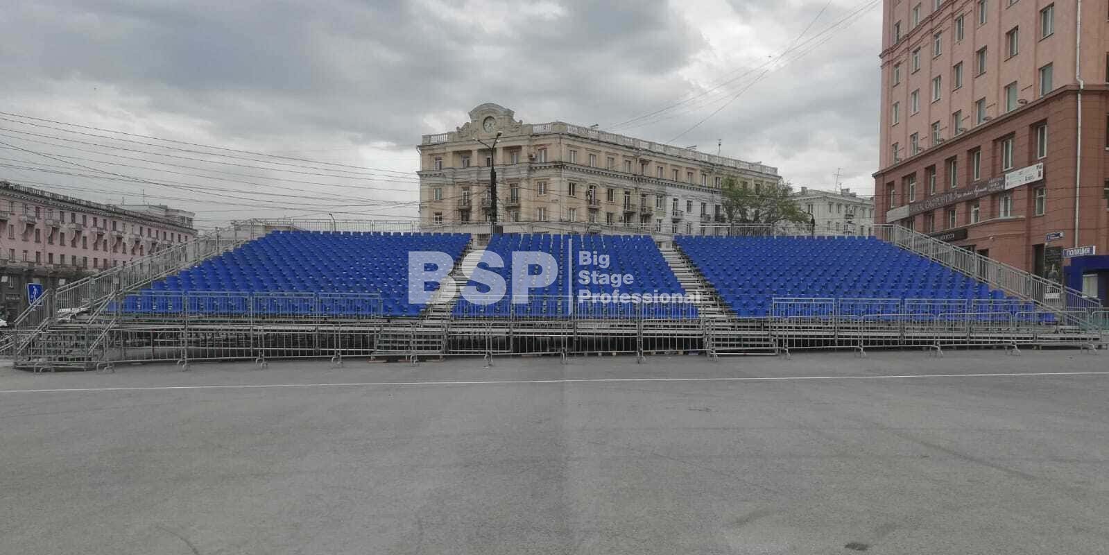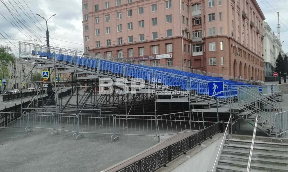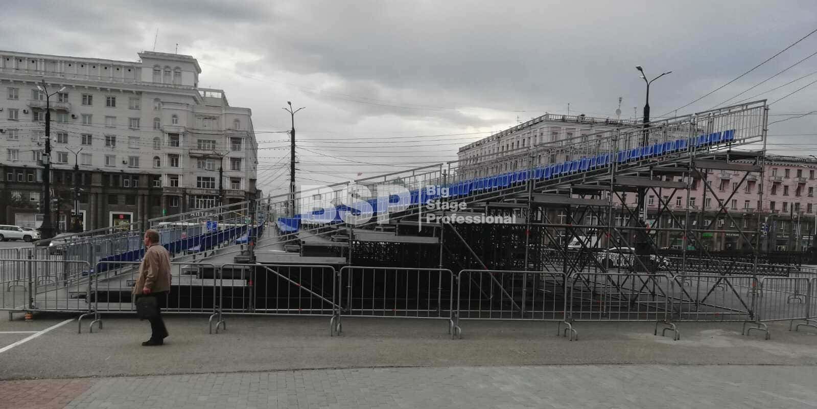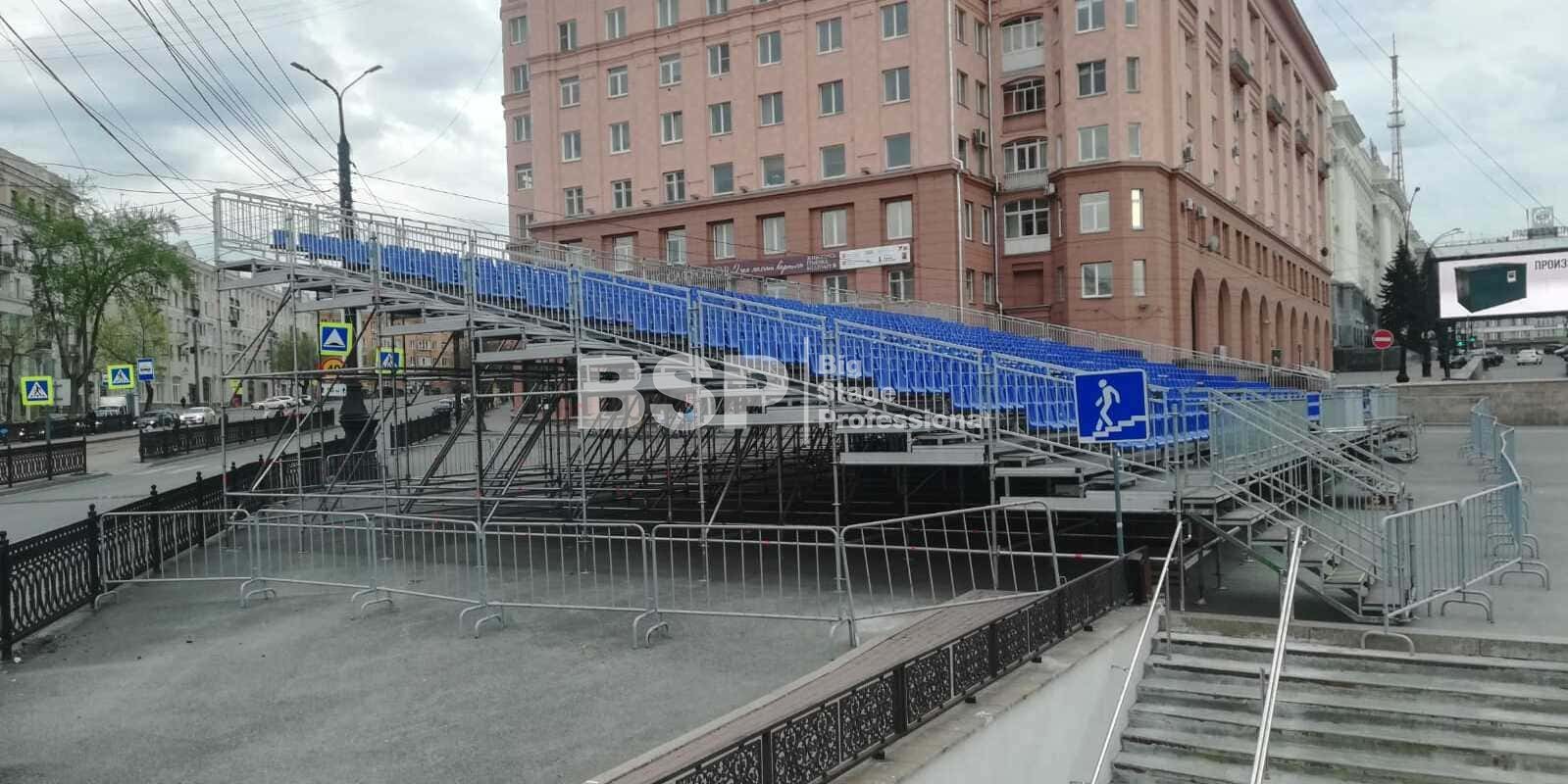 Мы установили трибуны для зрителей Парада Победы.