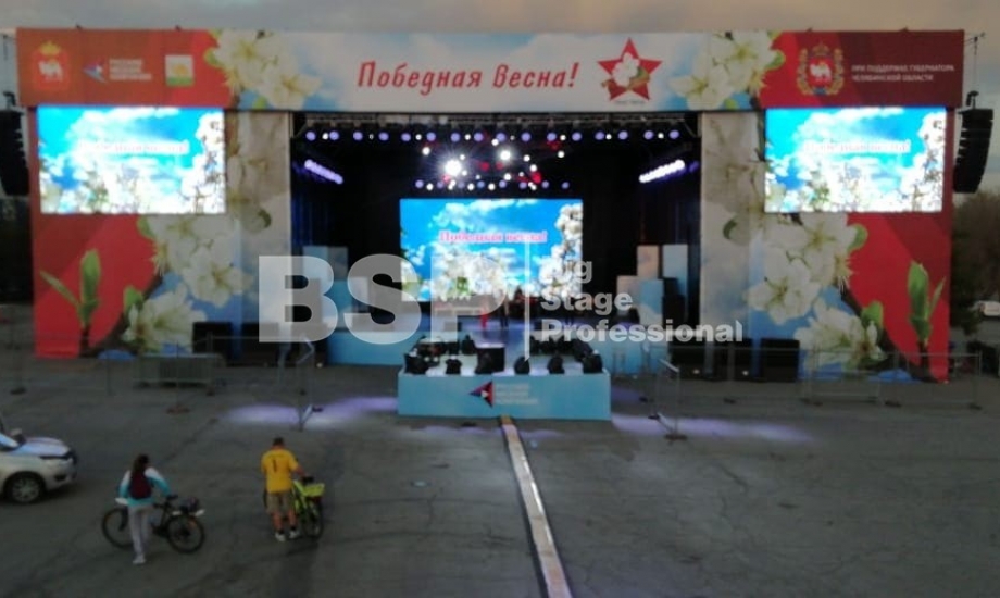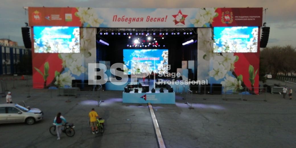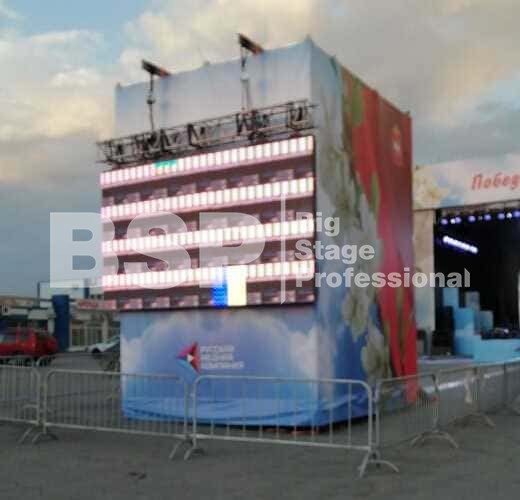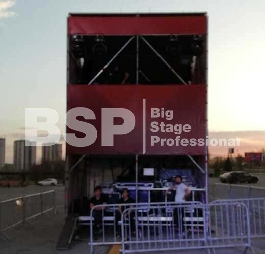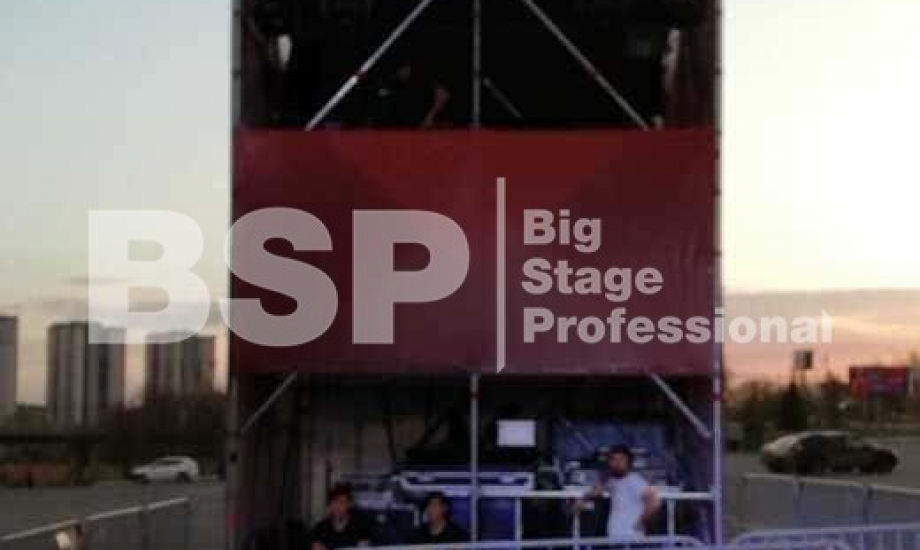 Мы установили сценический комплекс с языком и конструктивом для светодиодных экранов, двухуровневую пультовую с конструкцией для подвеса экрана, 2 камерные платформы, предоставили различные ограждения.