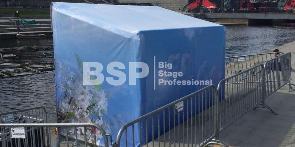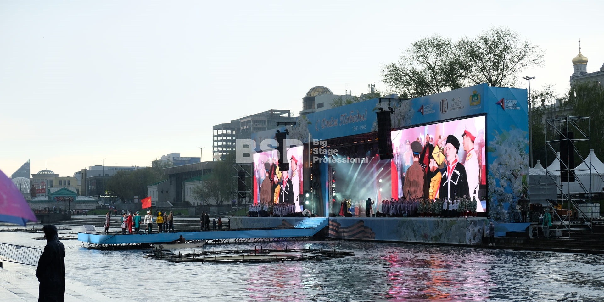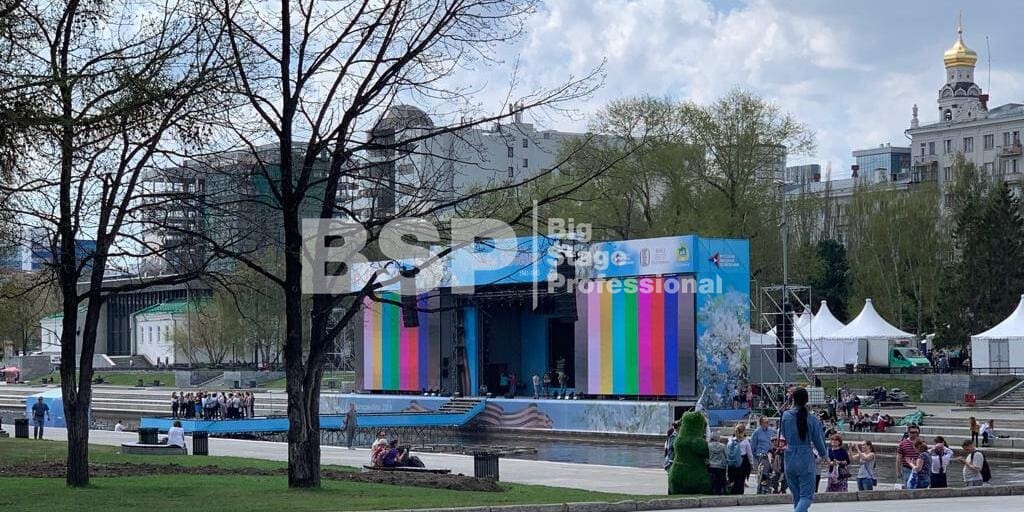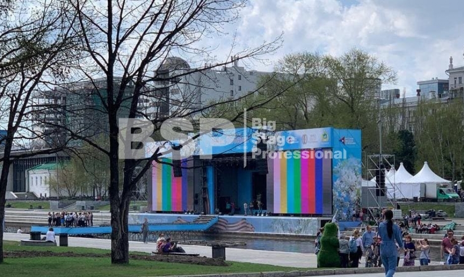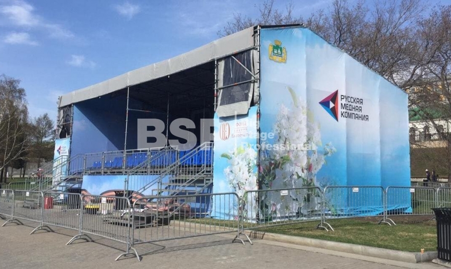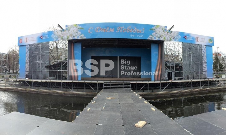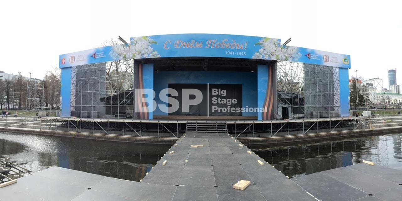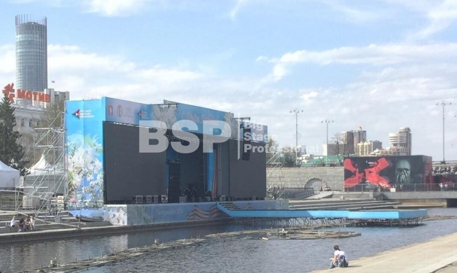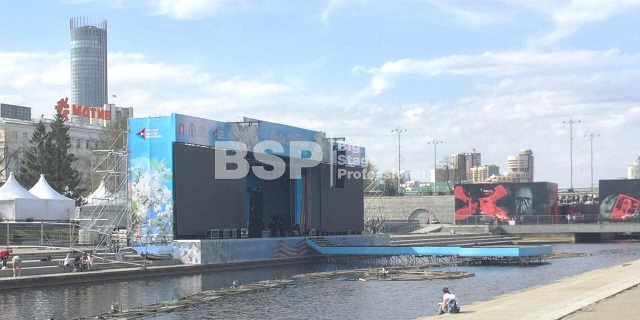 Мы установили сценический комплекс с мостом над рекой Исеть, отдельно стоящие звуковые порталы, vip-трибуну с пультовой, 3 камерные платформы, пультовую, грузоподъемное оборудование и ограждения.