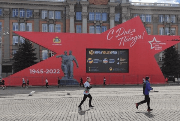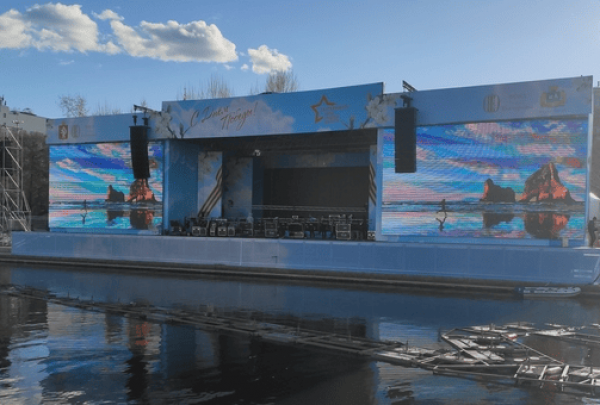 Мы установили конструкцию для светодиодного экрана в форме звезды, 8 стел с изображениями памятников Екатеринбурга и экранами, и зрительскую трибуну почти на 4000 мест.