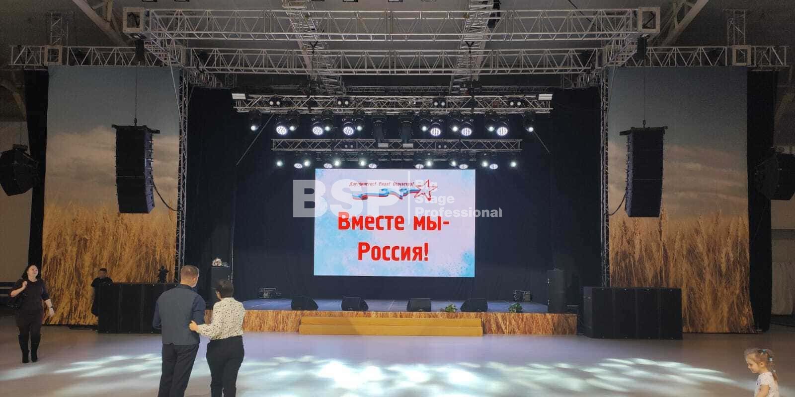 В СК «Юбилейный» мы установили сценический подиум с конструкцией под экран и оснастили его световым и, частично, звуковым оборудованием.