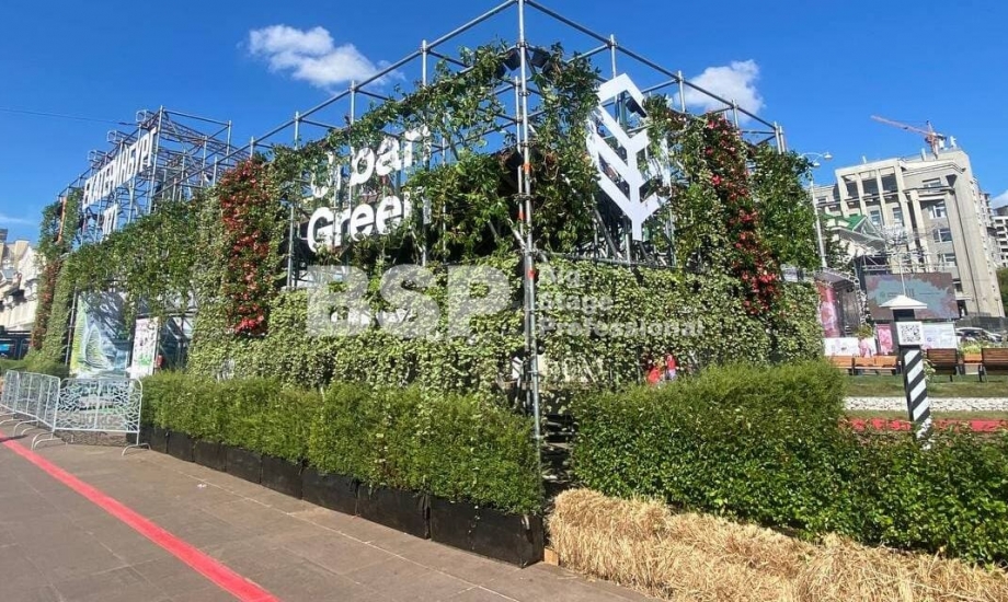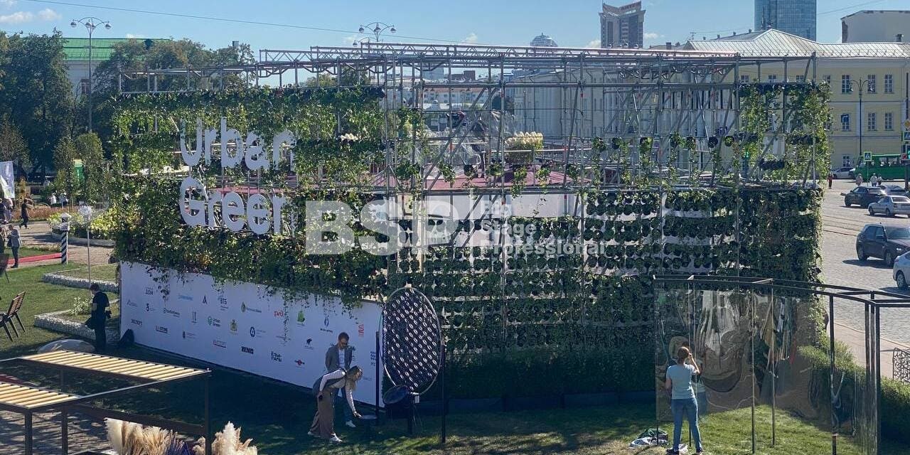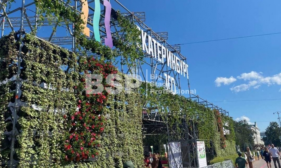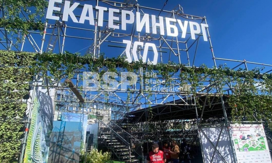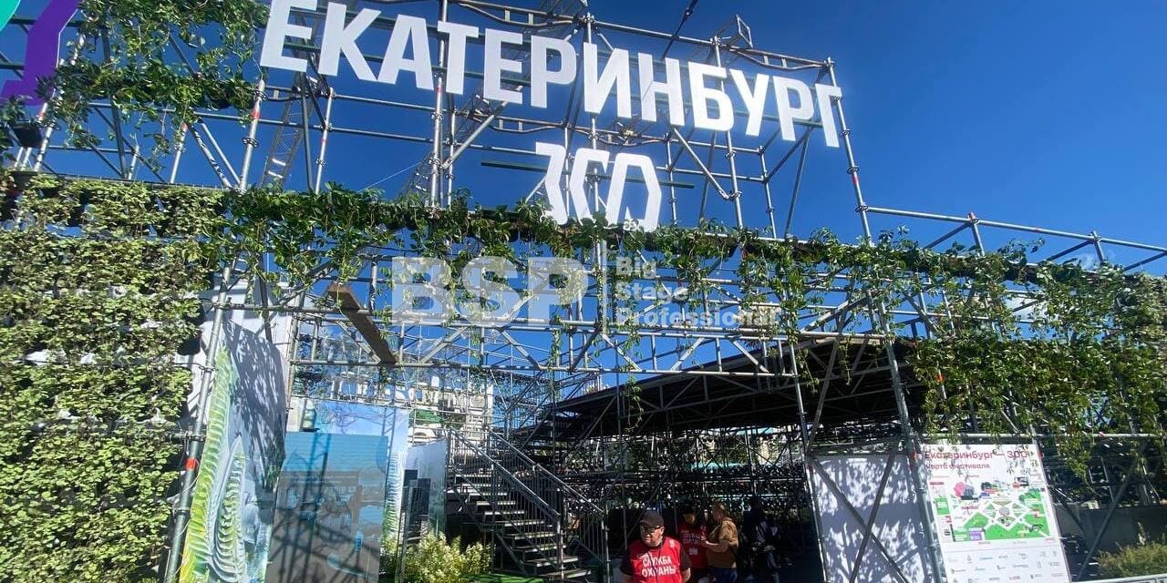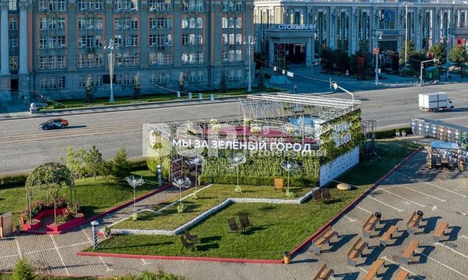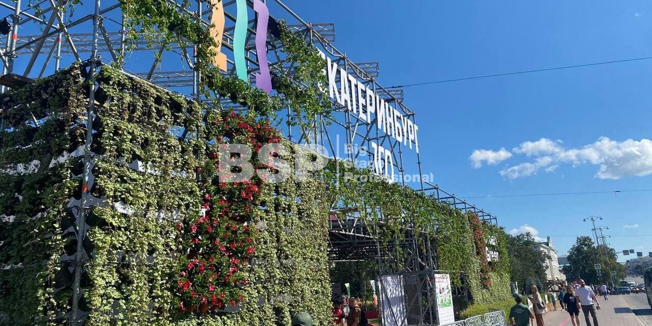 На Площади 1905 года мы возвели уникальную многоуровневую конструкцию, которая выступила в качестве входной группы, оргкомитета и вип-зоны фестиваля. Конструкция была задекорирована живыми растениями и цветами.