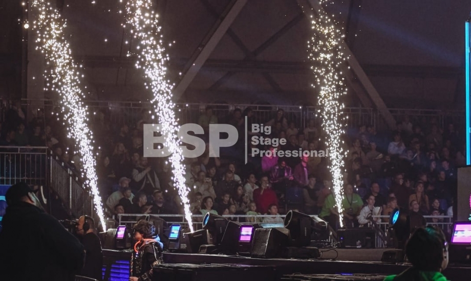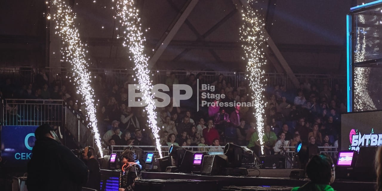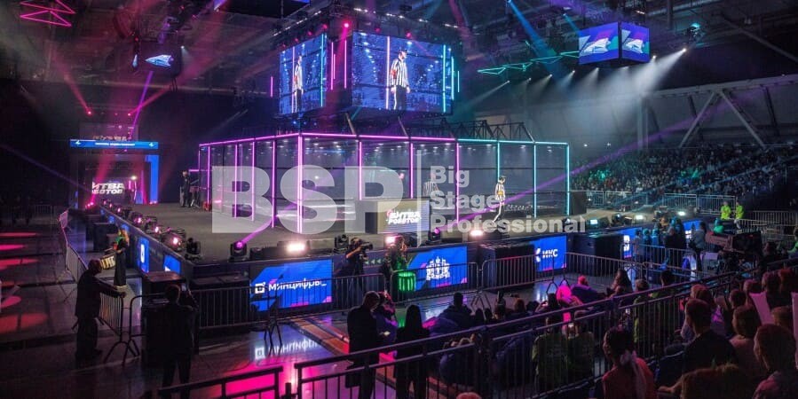 На площадке МВЦ «Екатеринбург-ЭКСПО» мы установили 4 зрительские трибуны почти на 2000 мест. Самая большая трибуна была совмещена с пультовой 8х4 м.