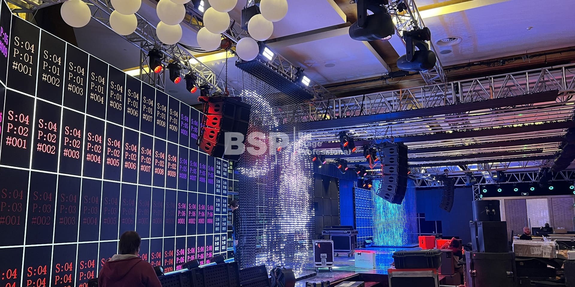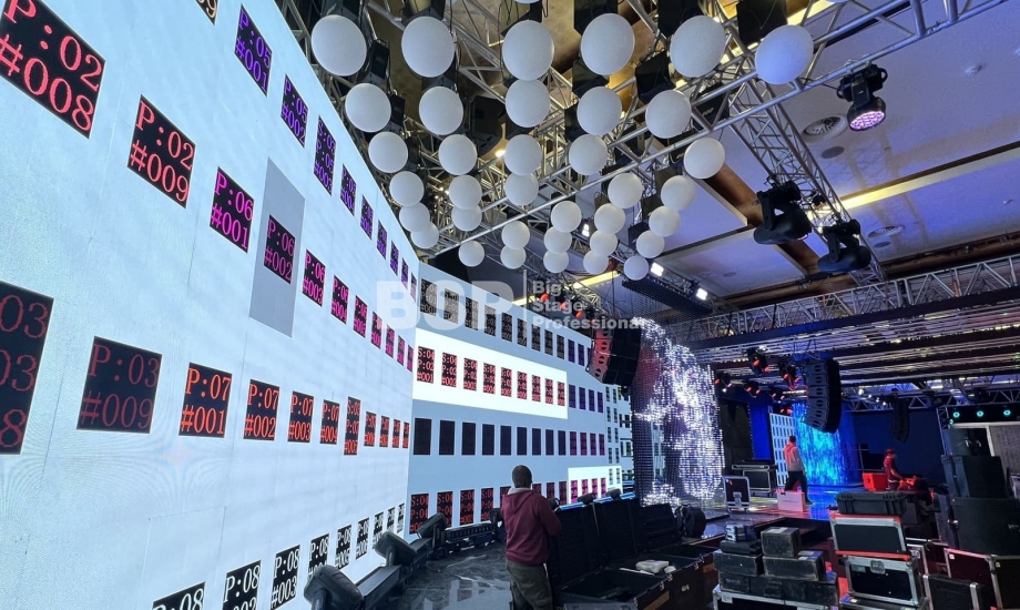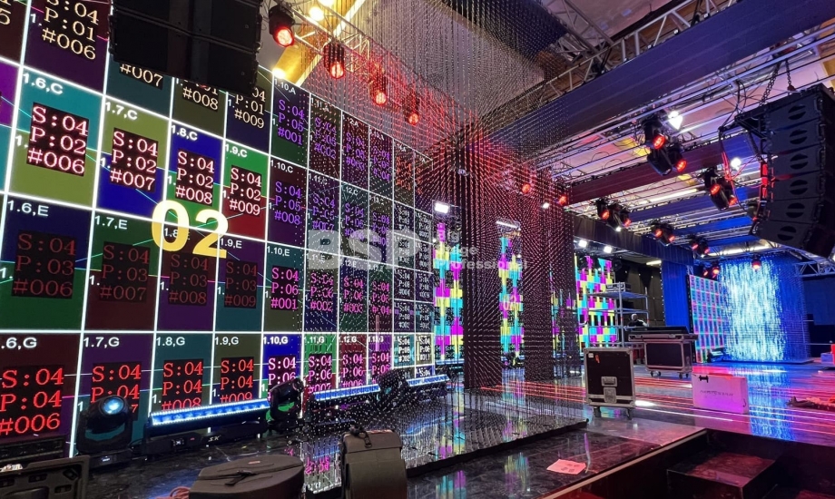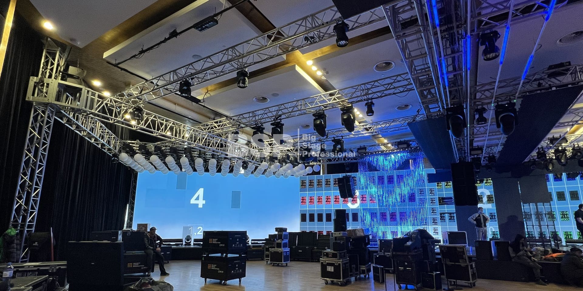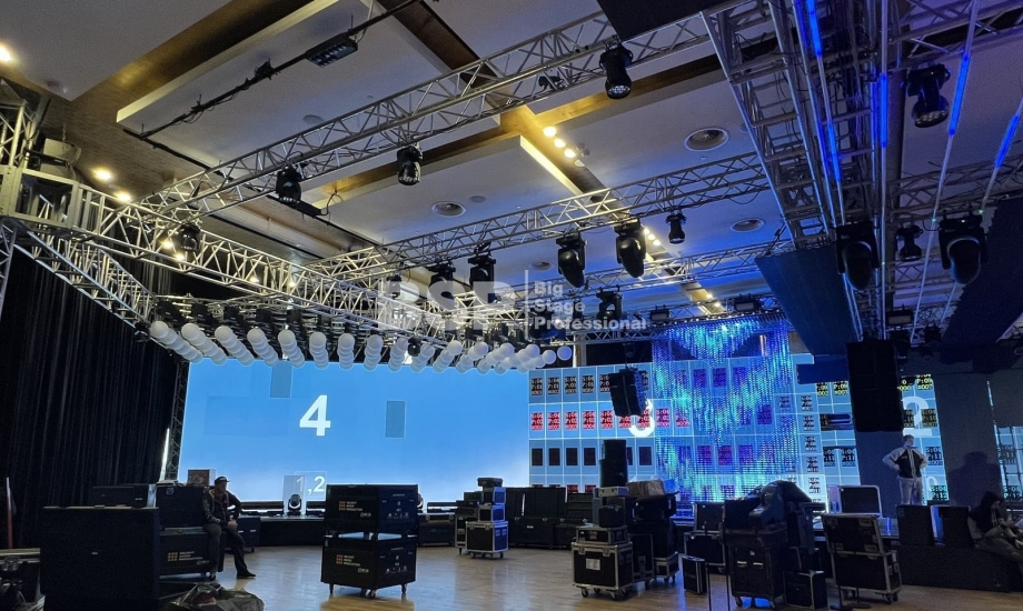 В многофункциональном зале "Хаятт Ридженси Екатеринбург" мы установили масштабную систему подвеса оборудования, на которой возможно разместить более 4 тонн оборудования и декораций. Также, по длинной стороне зала нами был возведен нестандартный сценический подиум более 30 метров в ширину с конструкциями для множества для светодиодных экранов. Электрообеспечение и световое оборудование (частично) тоже установили наши специалисты.