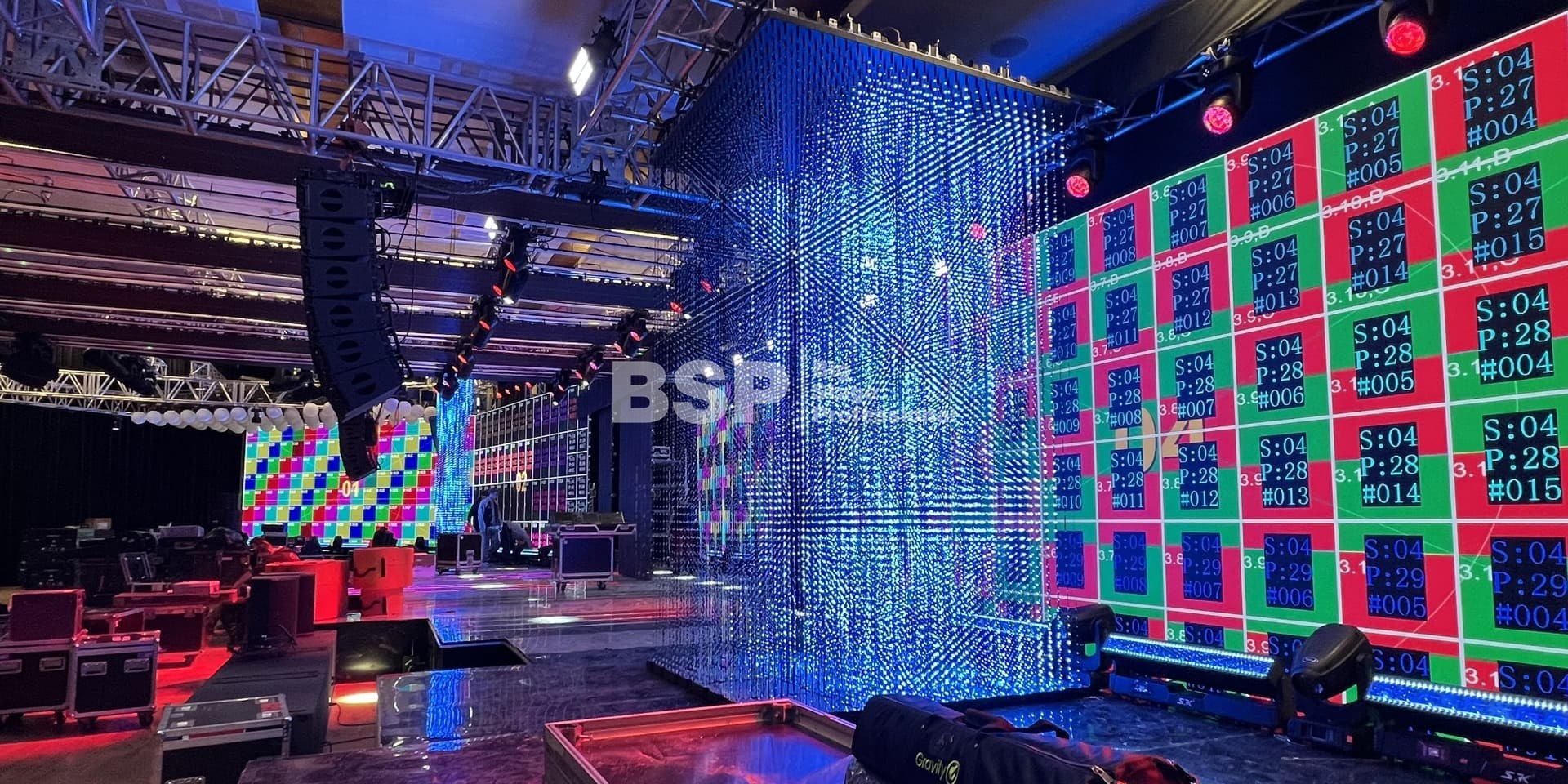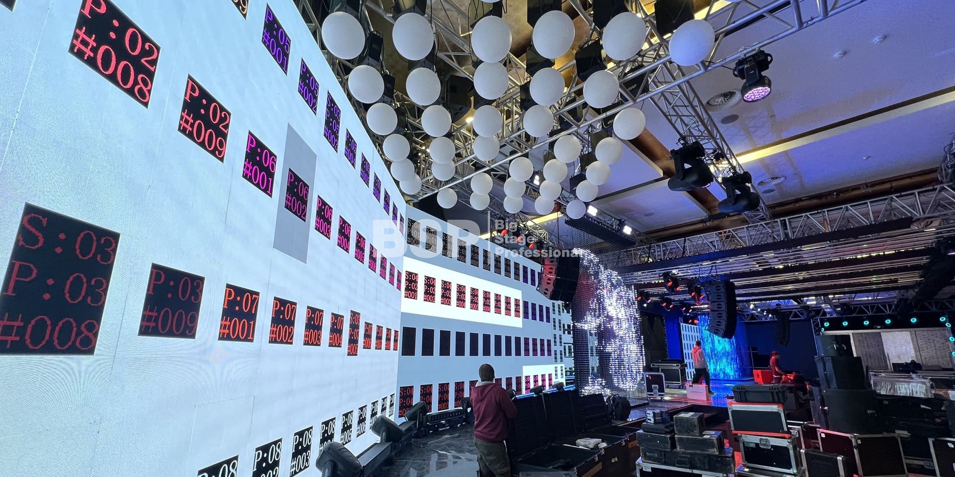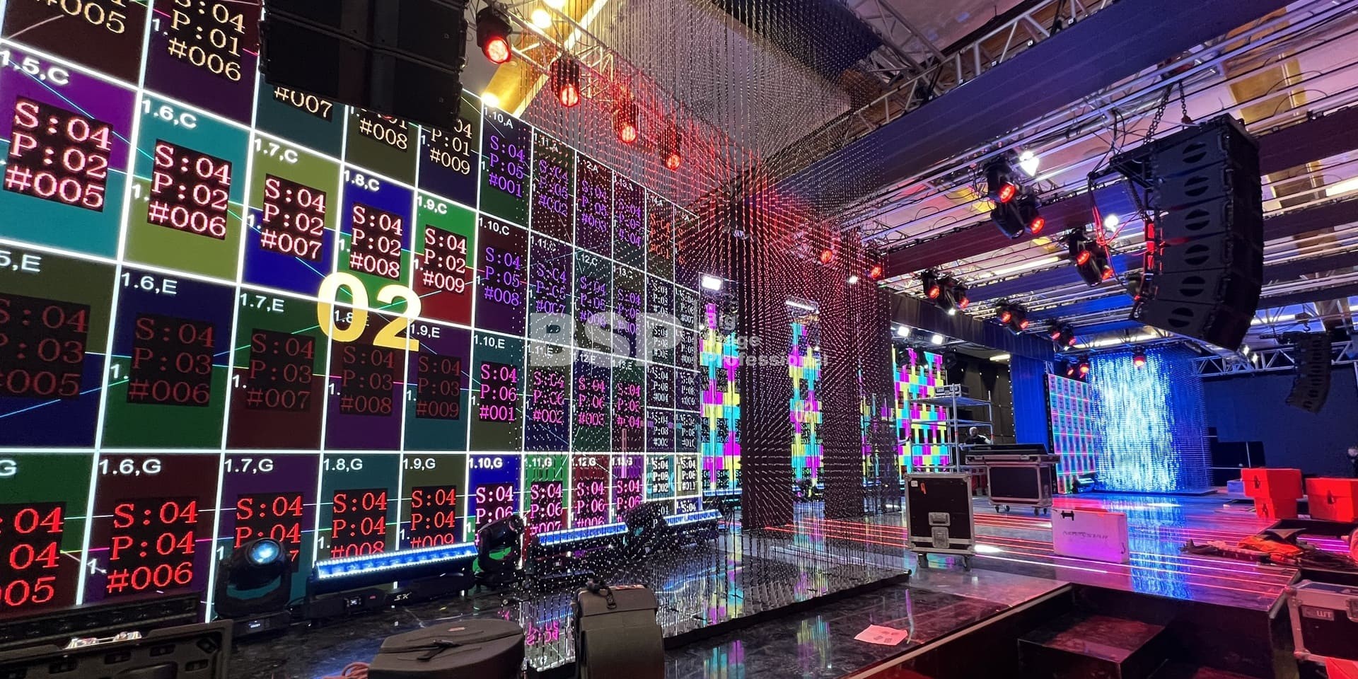 В многофункциональном зале "Хаятт Ридженси Екатеринбург" мы установили масштабную систему подвеса оборудования, на которой возможно разместить более 4 тонн оборудования и декораций. Также, по длинной стороне зала нами был возведен нестандартный сценический подиум более 30 метров в ширину с конструкциями для множества для светодиодных экранов. Электрообеспечение и световое оборудование (частично) тоже установили наши специалисты.