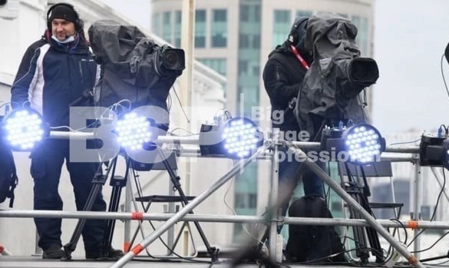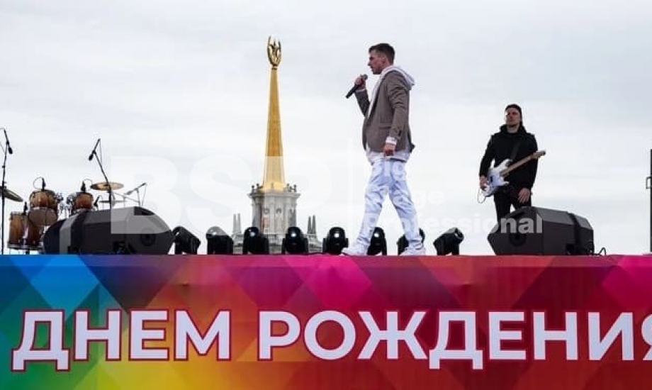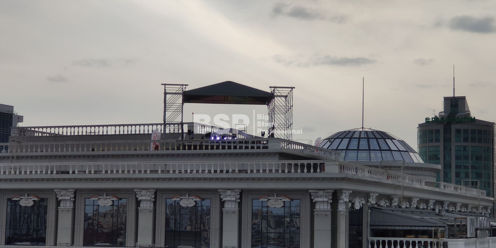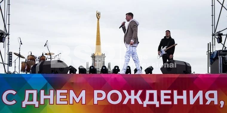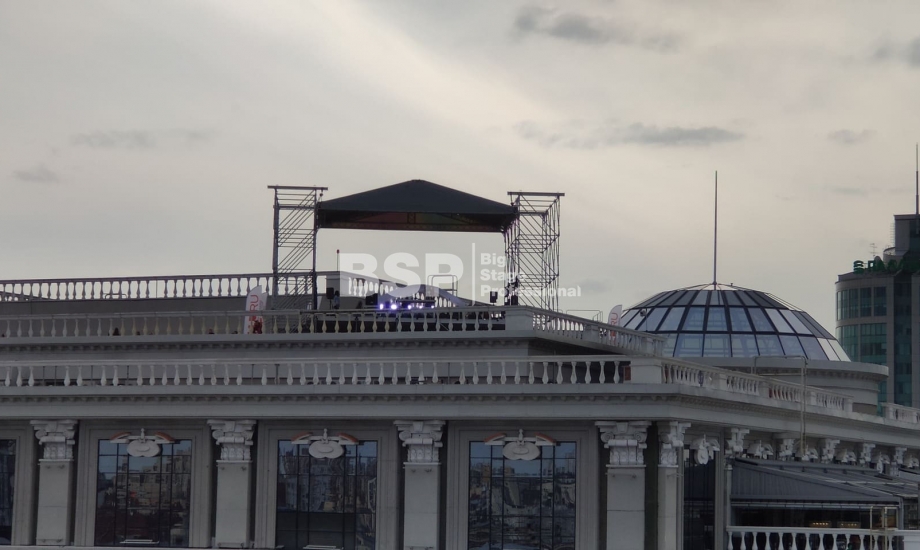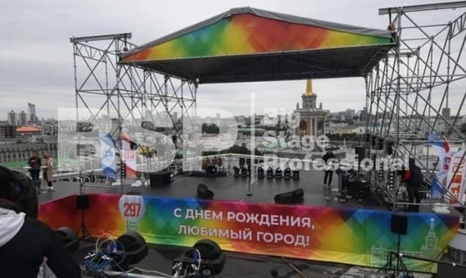 Из-за пандемии коронавируса праздничные выступления прошли в онлайн-формате. На крыше «Пассажа» мы установили яркую праздничную сцену, на которой выступили Олег Майами и артист лейбла Black Star Natan. Также мы поставили пультовую и камерные платформы.