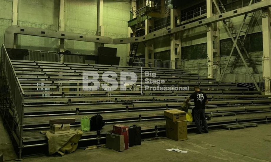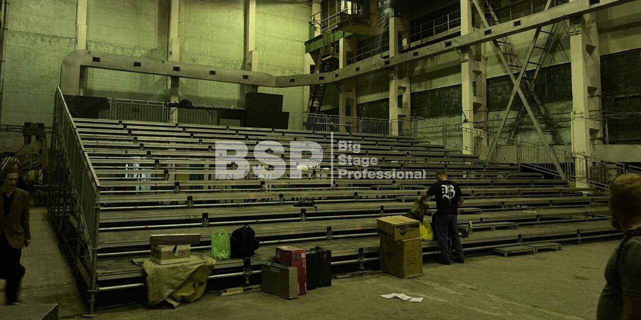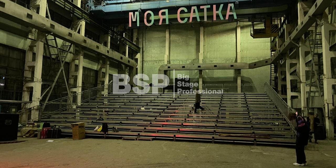 На арт-площадке «Ангар», в бывшем гараже БелАЗов на территории «Магнезита» состоялась премьера аудиовизуального перформанса «Уступы». Мы выступили техническим партнером мероприятия, установив зрительские трибуны для этого необычного перфоманса.