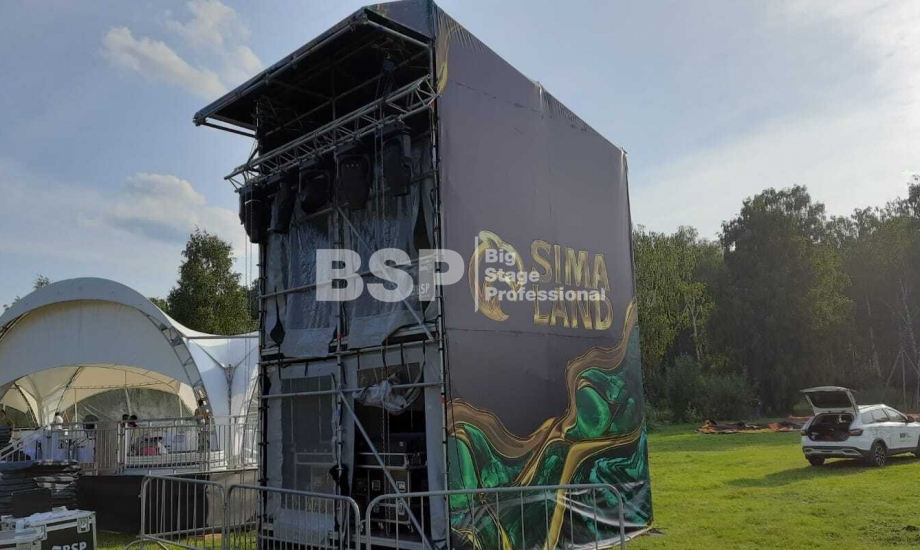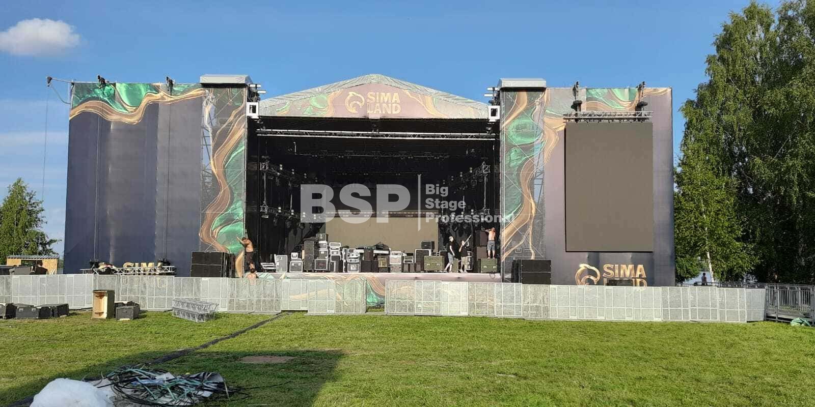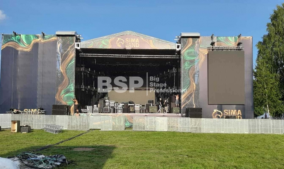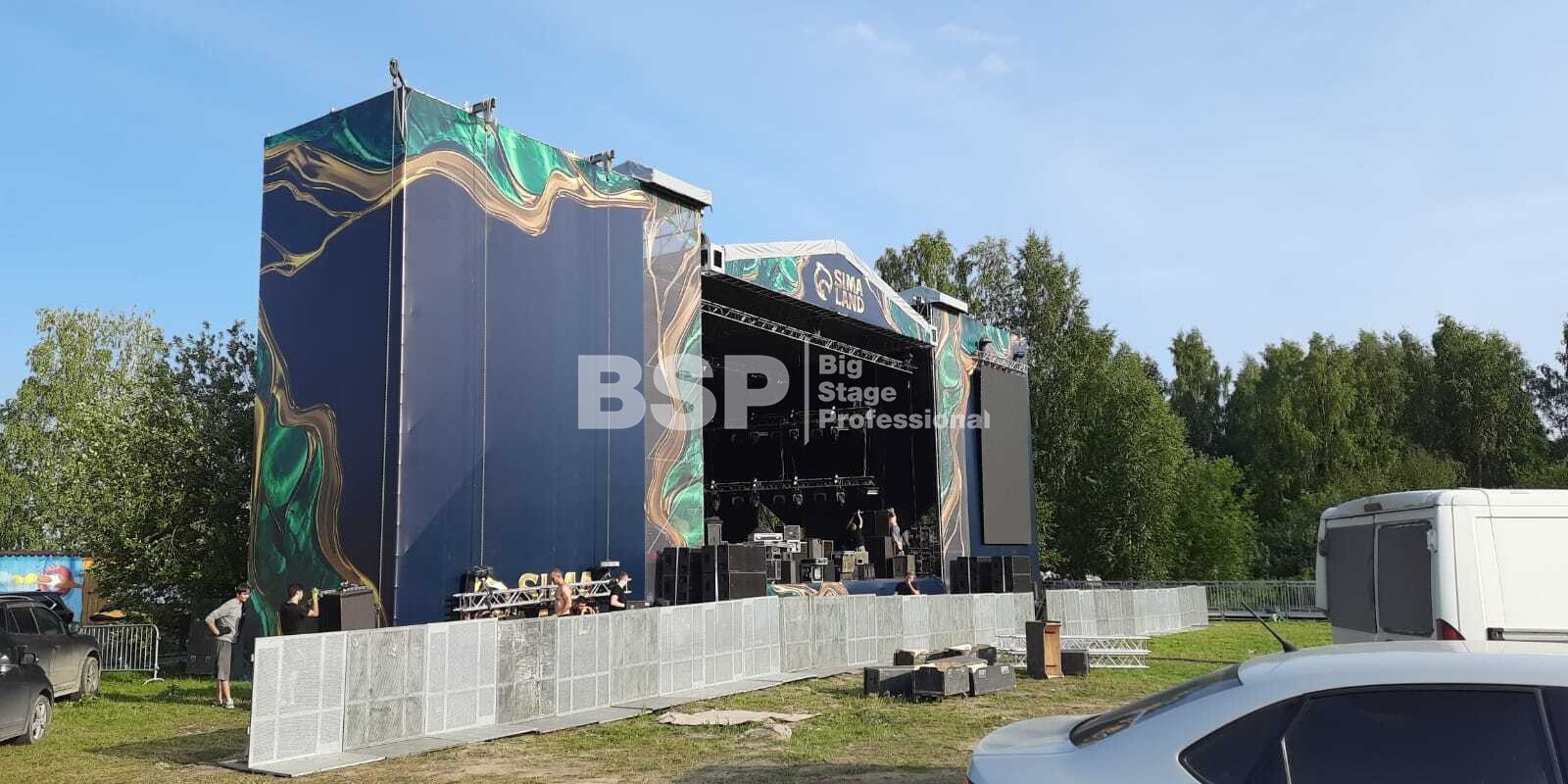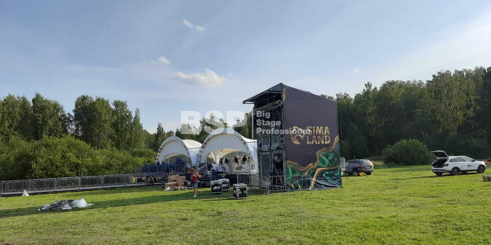 На берегу озера Балтым, на «Огонь пляже» мы установили брендированные сценический комплекс и двухуровневую пультовую, предоставили различные мобильные ограждения. Также мы возвели два необычных подиума с трапами или мостами, на которых стояли шатры.