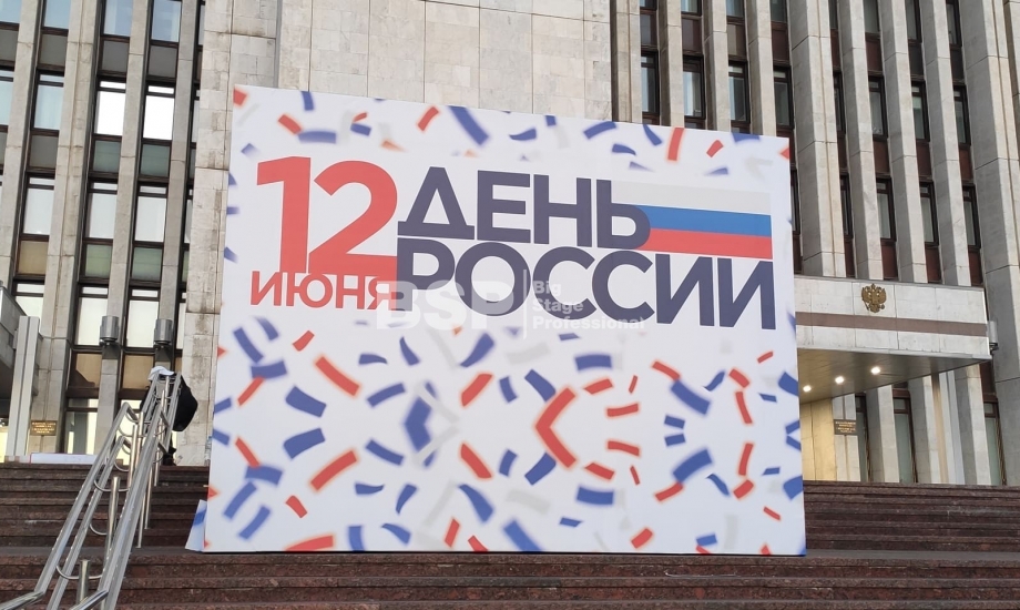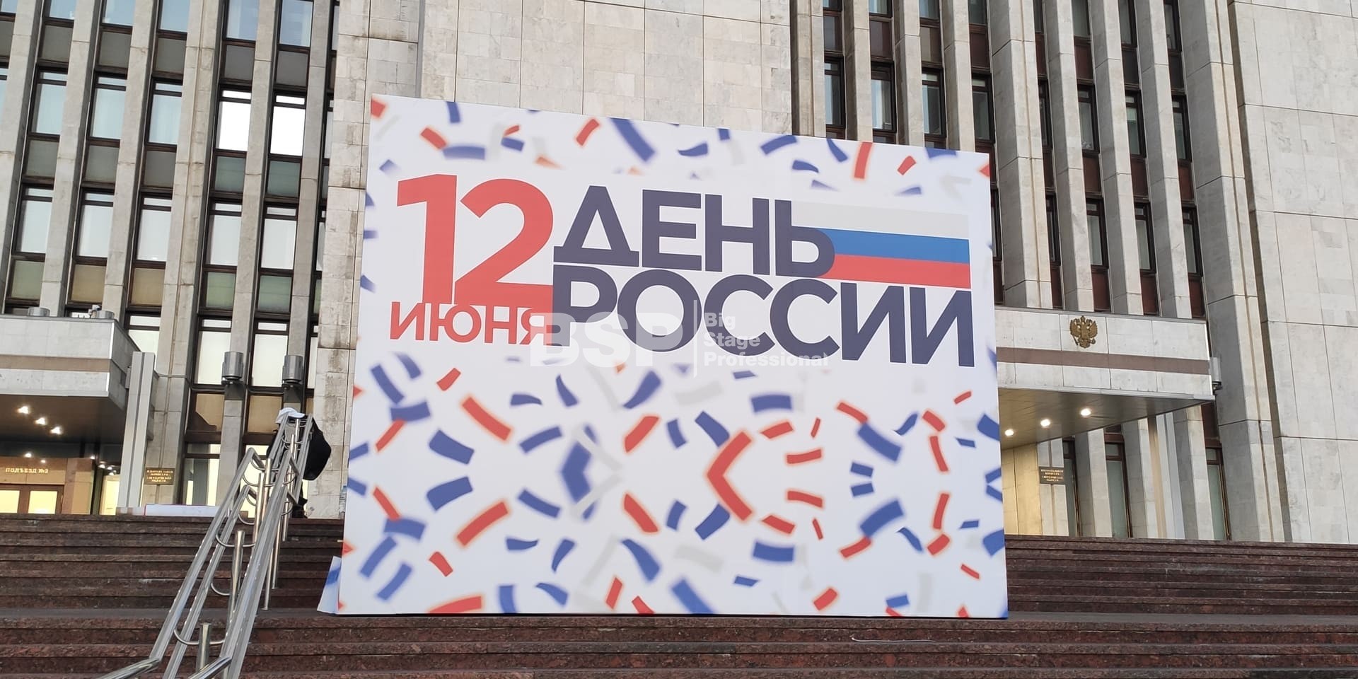 На ступенях Правительства Свердловской области мы установили пресс-волл и сценический планшет.