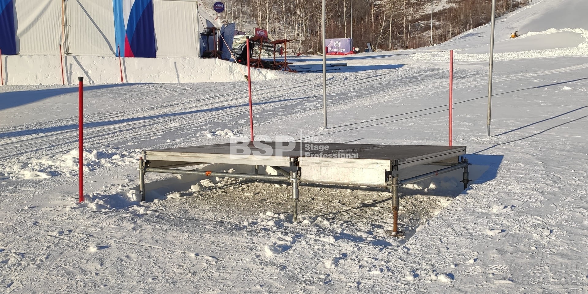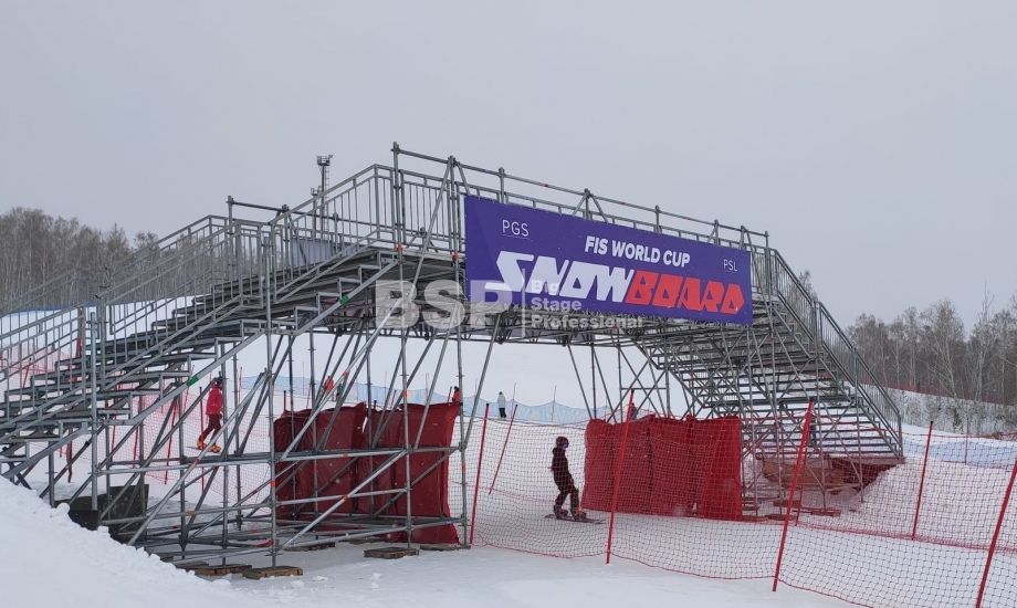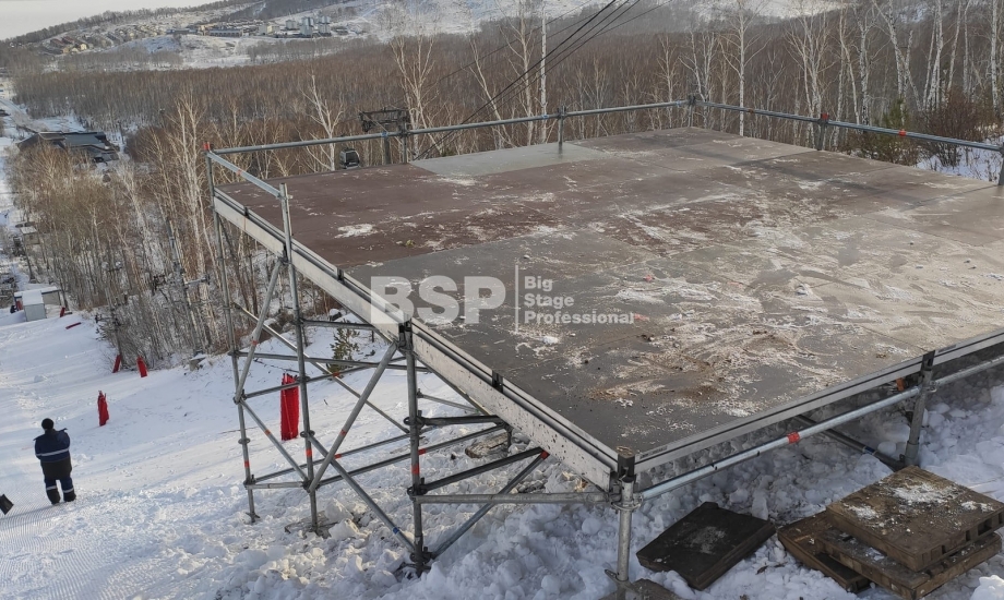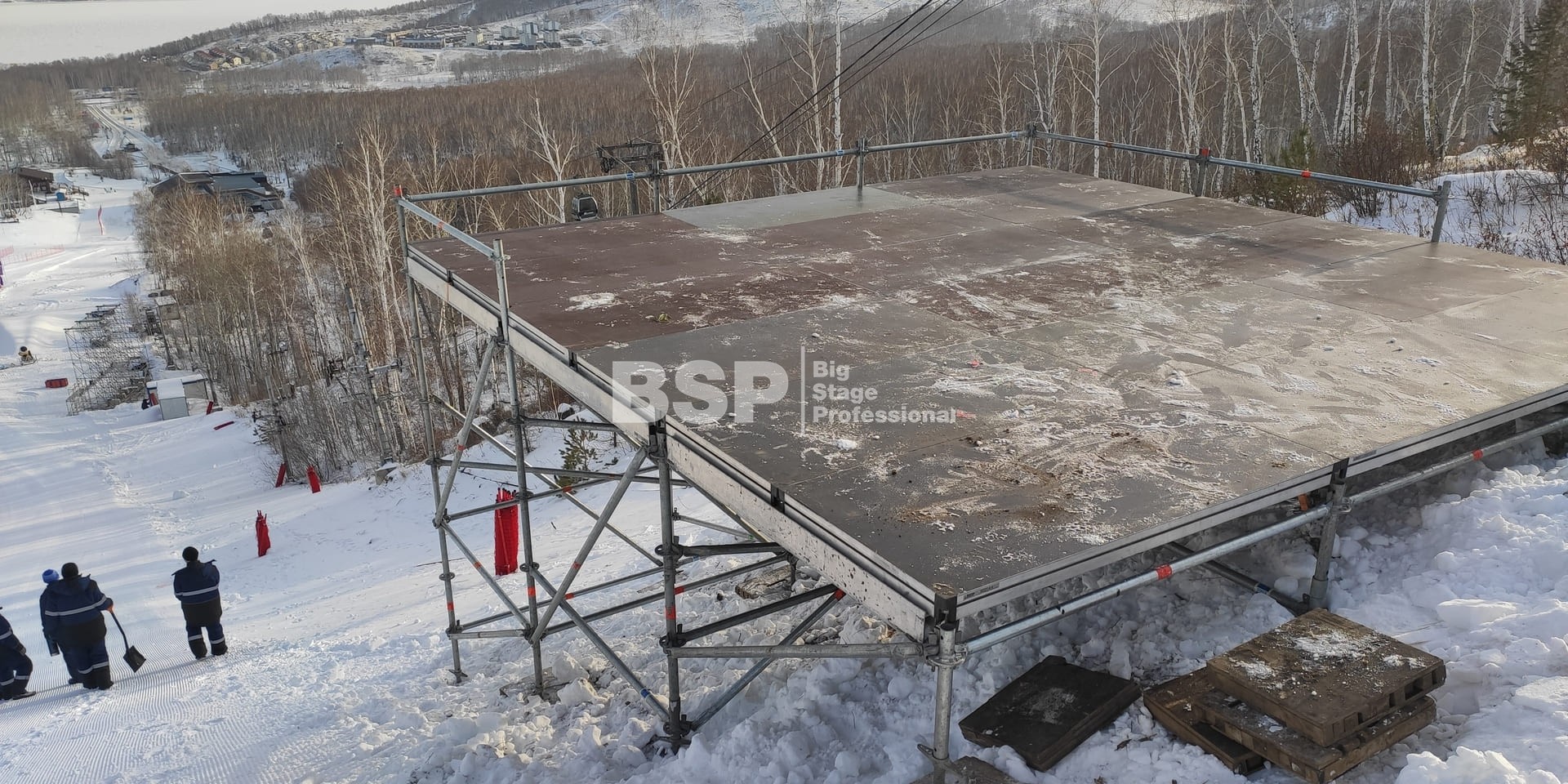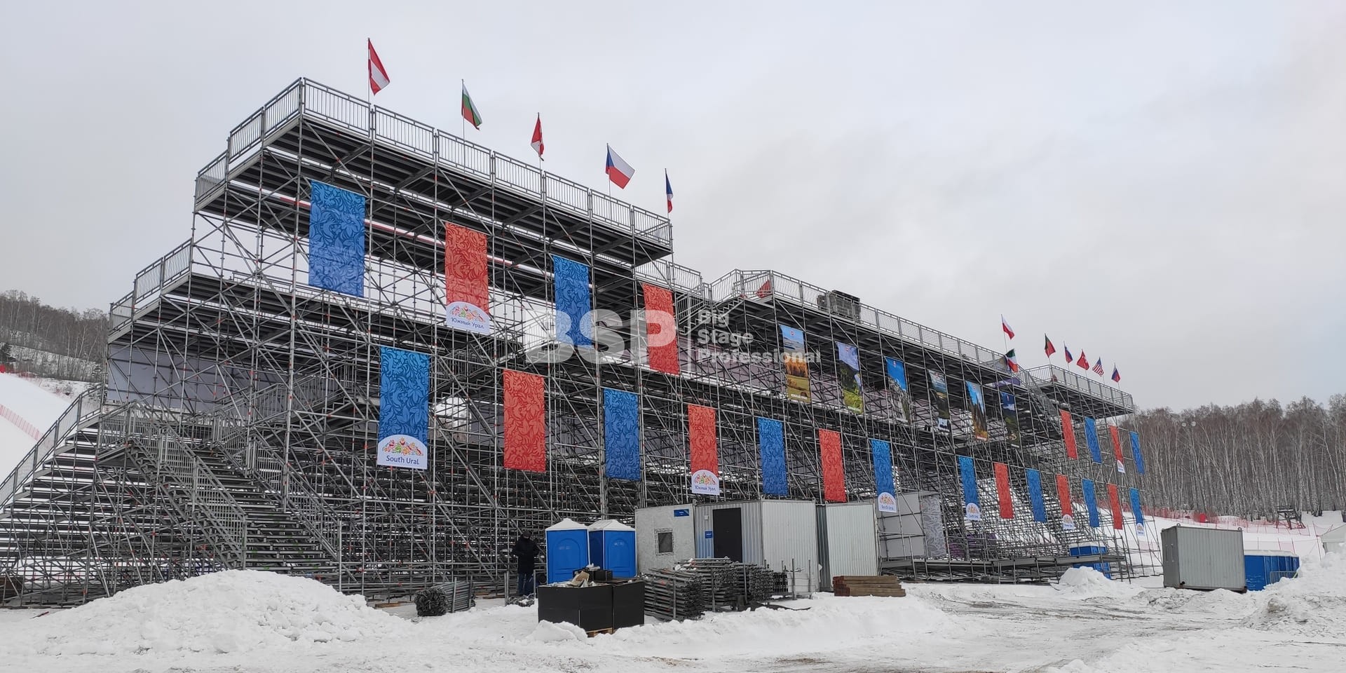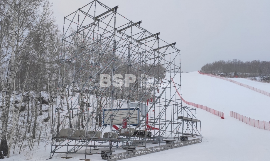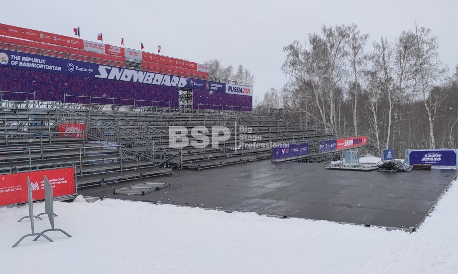 Мы установили трибунный комплекс с вип уровнем и площадкой для шатров, множество различных сценических планшетов и камерных платформ, конструкции для экранов, мост над сноубордической трассой, а также предоставили звуковое оборудование и ограждения.