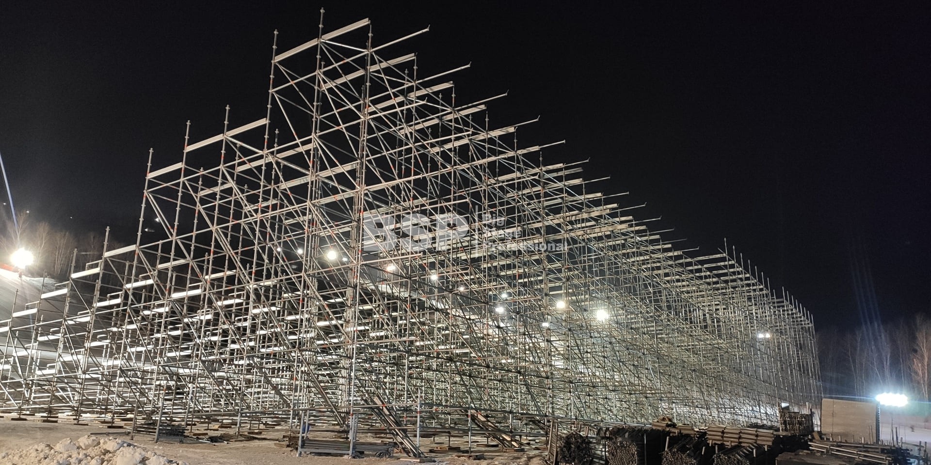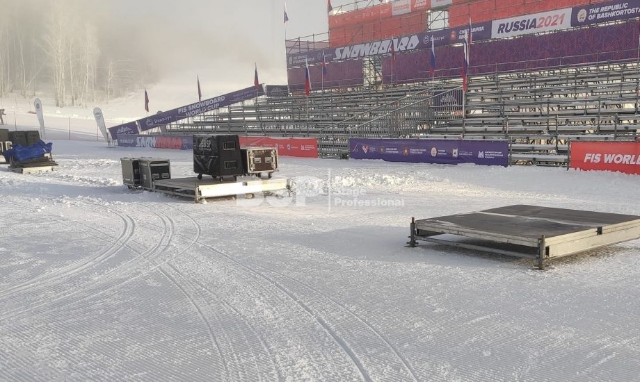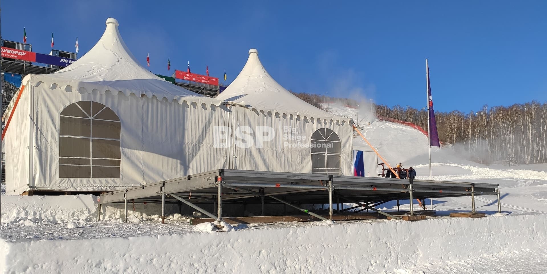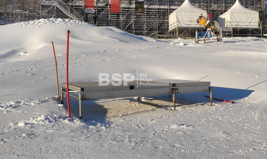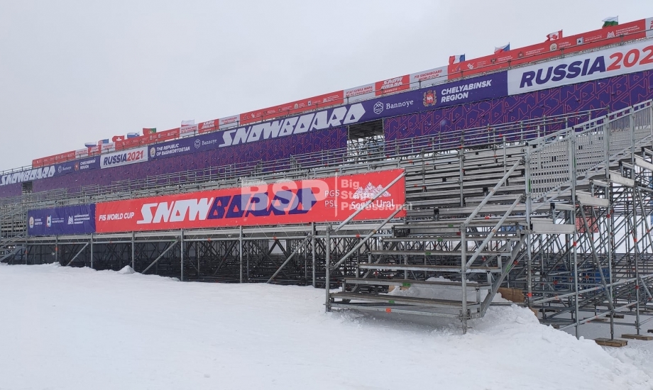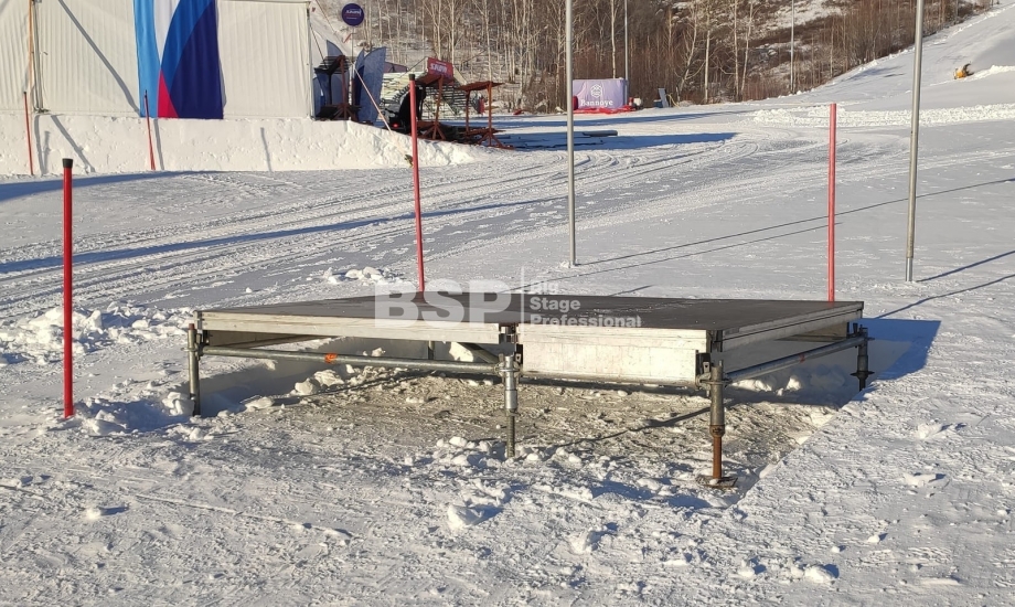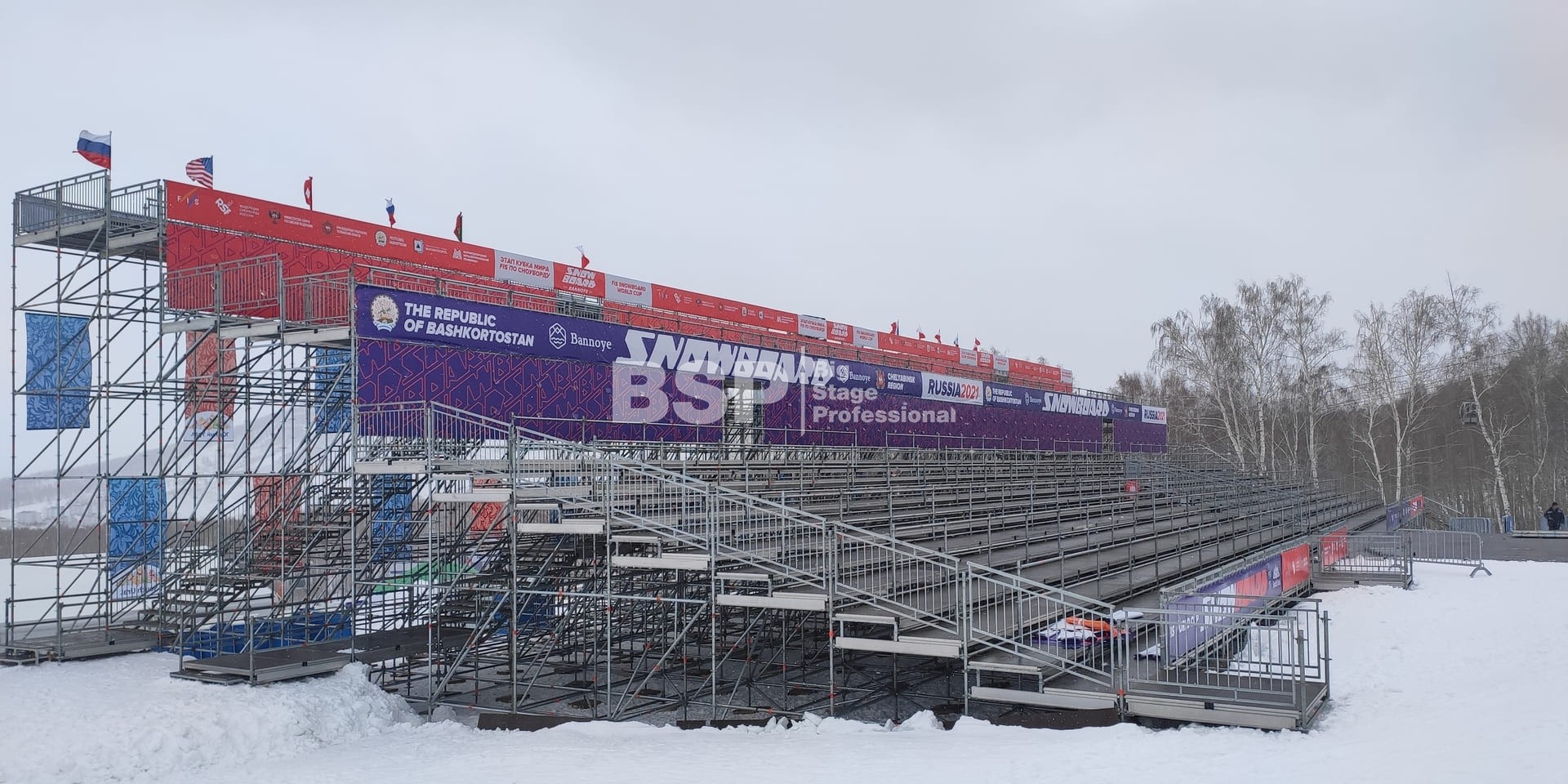 Мы установили трибунный комплекс с вип уровнем и площадкой для шатров, множество различных сценических планшетов и камерных платформ, конструкции для экранов, мост над сноубордической трассой, а также предоставили звуковое оборудование и ограждения.