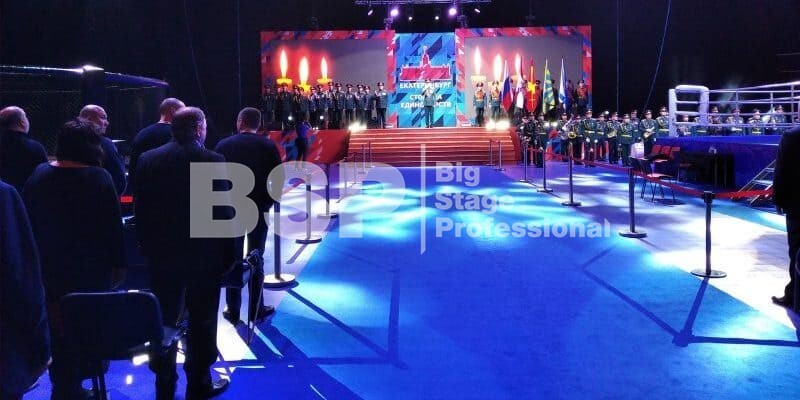 В ДИВС "Уралочка" мы установили сценический планшет с лестницей по центру и конструкциями под экраны, фермовые конструкции, предоставили звуковое, световое, грузоподъемное и энергообеспечивающее оборудование, и ограждения.