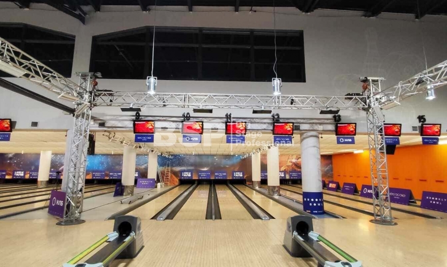 Это интересное спортивное мероприятие проходило в РЦ «Луна», где мы установили фермовые конструкции с осветительными приборами.