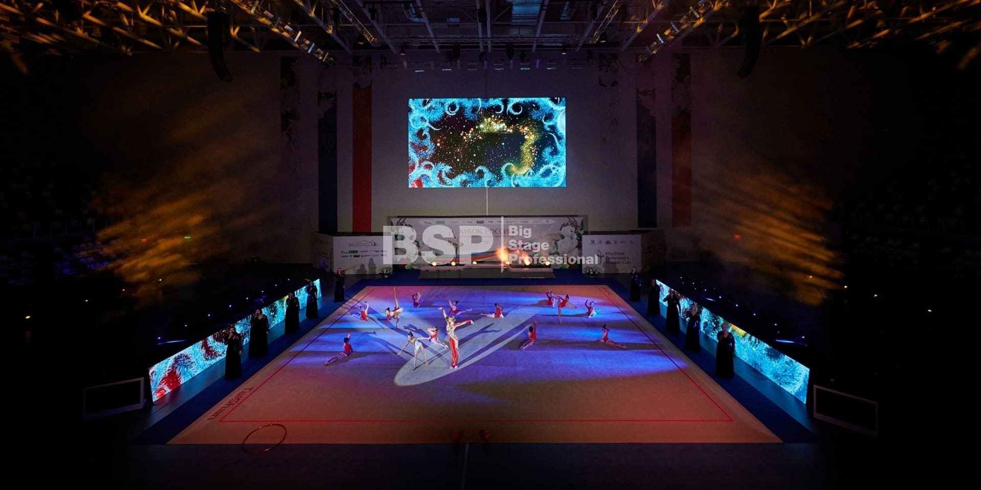10 декабря прошёл Гала-концерт звезд мировой художественной гимнастики. Мы установили фермовые конструкции, световое оборудование, включая LED pixel stick и проектор на гимнастический ковер.