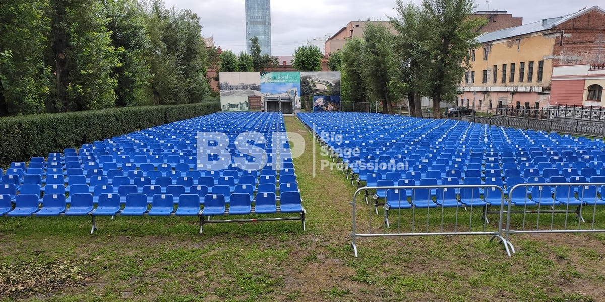 В Саду Вайнера мы возвели яркий сценический комплекс в фирменном стиле мероприятия, партер для зрителей, пультовую и входную группу с двумя проходами. Также мы оснастили мероприятие световым и звуковым оборудованием, энергообеспечением, предоставили шатры и ограждения.