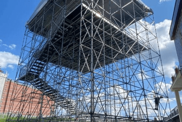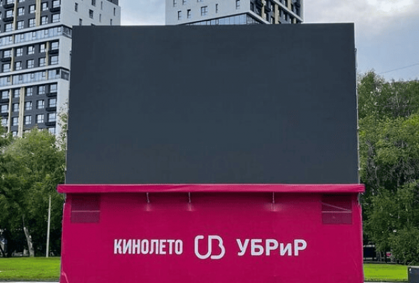 На аллее парка Маяковского мы ежегодно устанавливаем конструкцию для огромного экрана с местом для хранения внутри конструктива и звуковое оборудование.