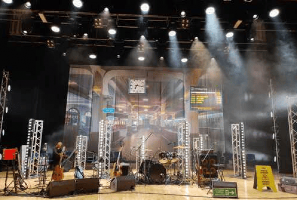 В первом павильоне "Екатеринбург - Экспо" мы установили трёхуровневый сценический планшет с лестницами снаружи и внутри конструкции, зрительскую трибуну почти на 1500 мест, камерные платформы и предоставили силовые барьеры безопасности.