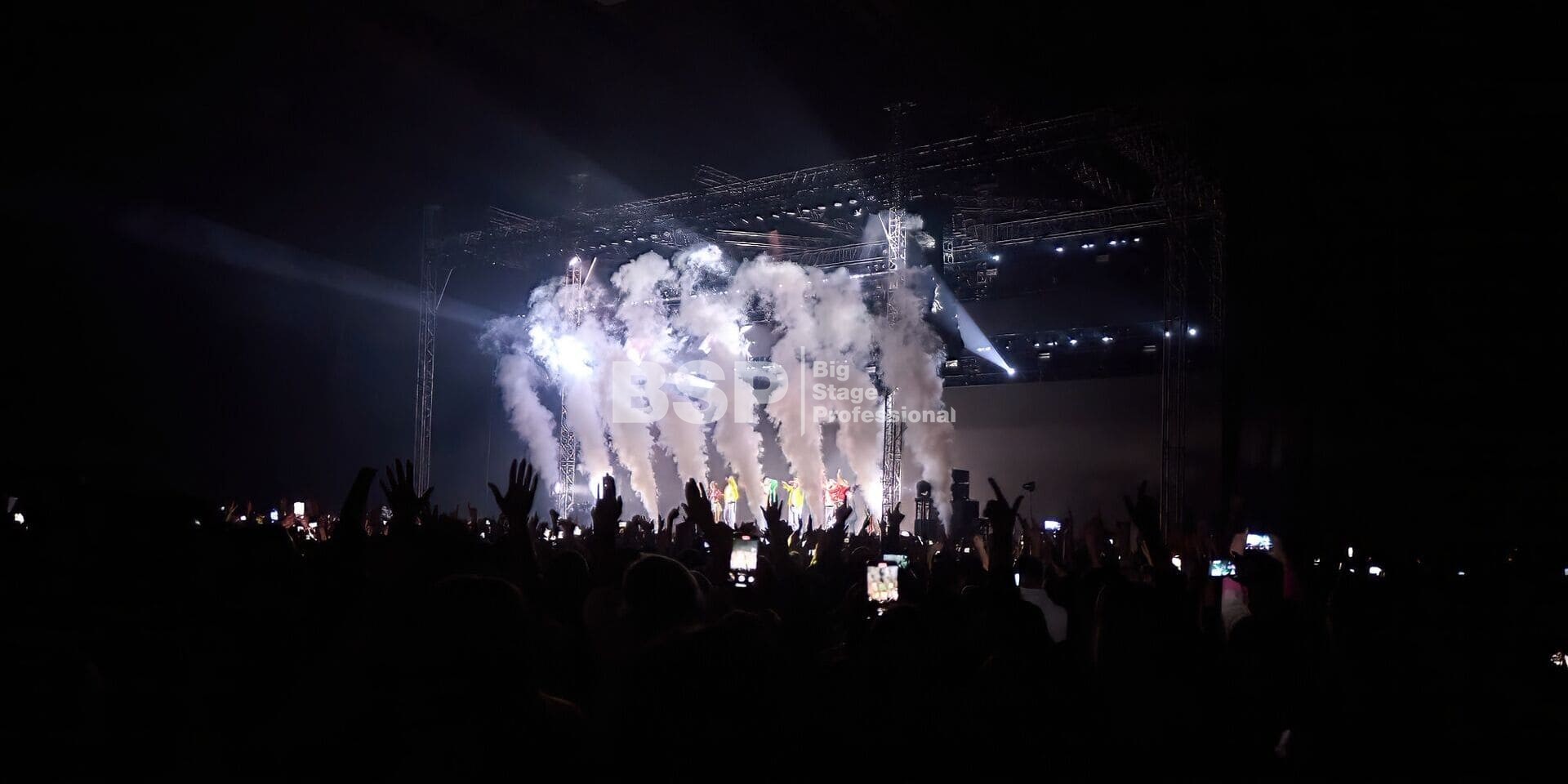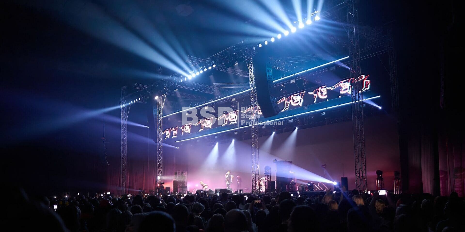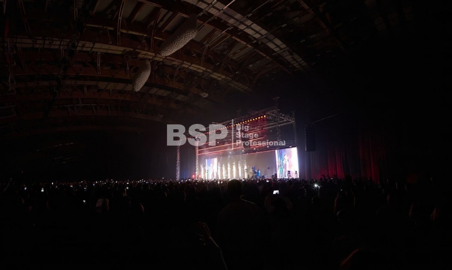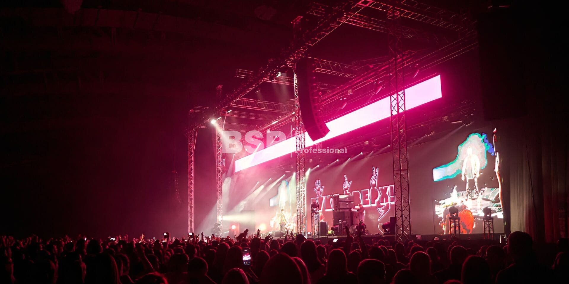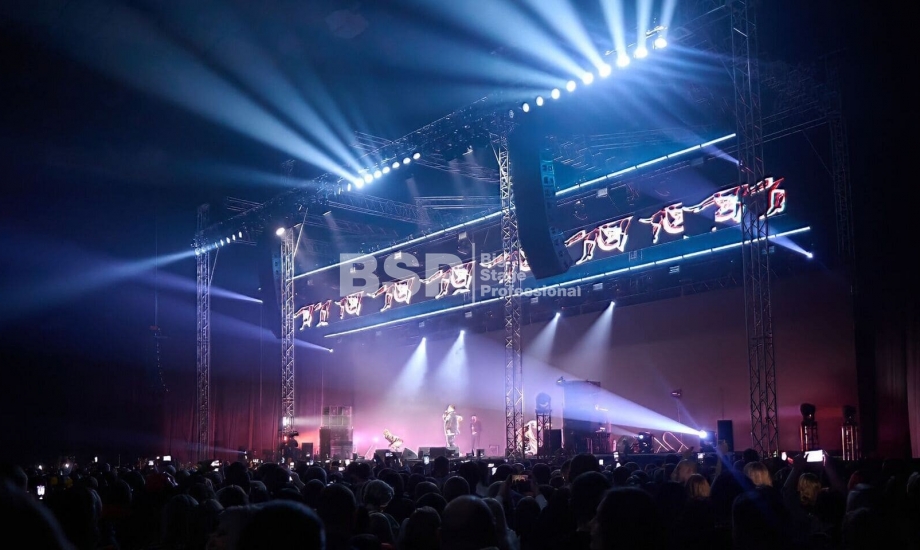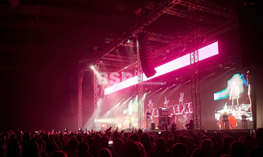 В ледовом дворце «Кузбасс» мы установили большой граунд из фермовых конструкций, на котором размещалось световое и звуковое оборудование, а также светодиодные экраны.