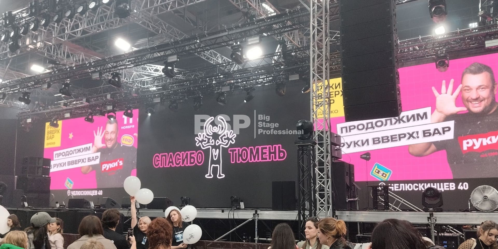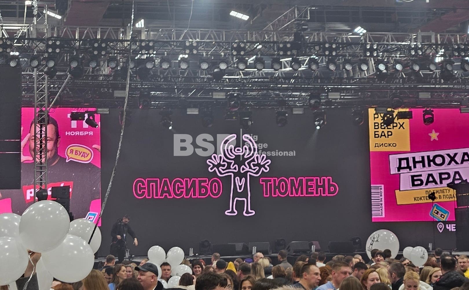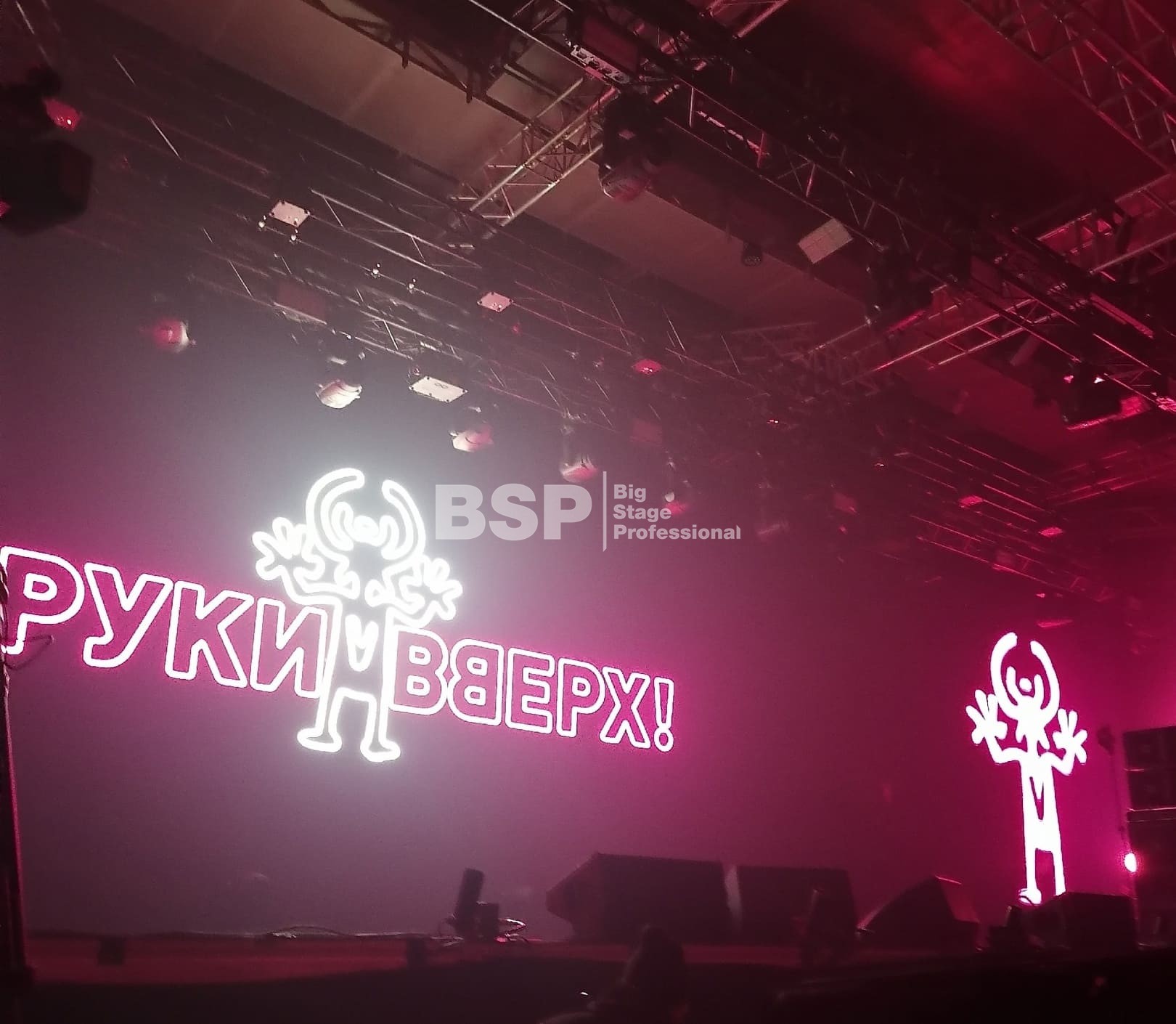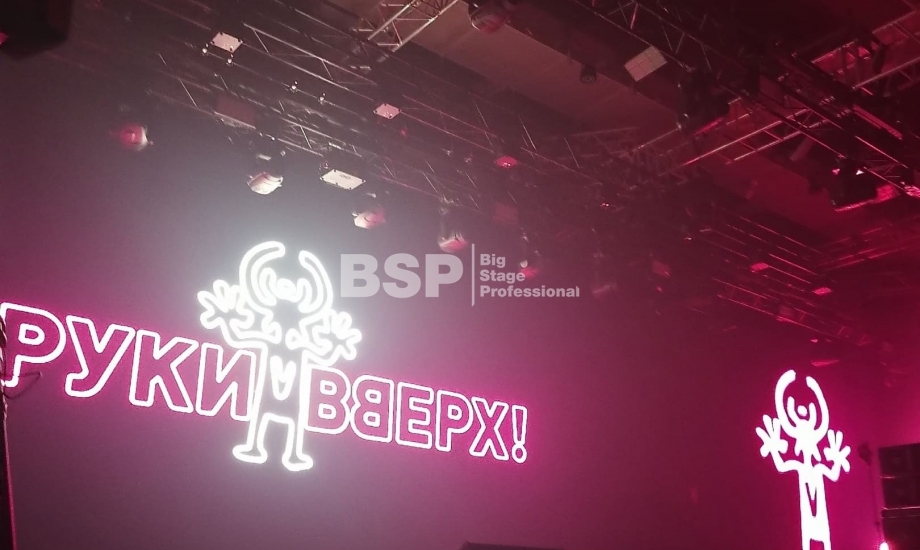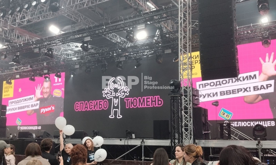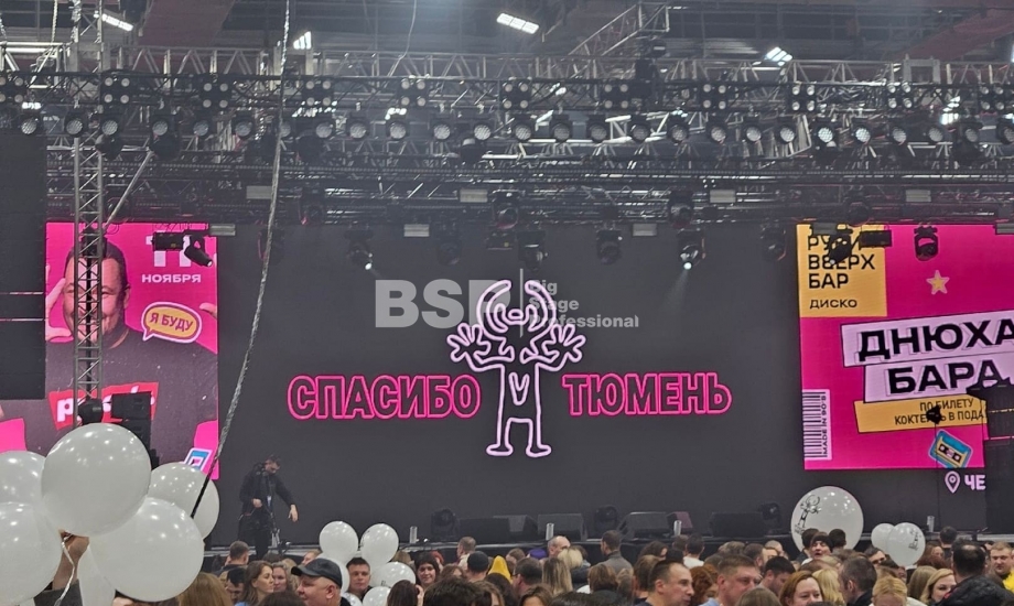 Во дворце спорта «Рубин» мы установили большой граунд из фермовых конструкций, на котором размещалось световое и звуковое оборудование, а также светодиодные экраны.