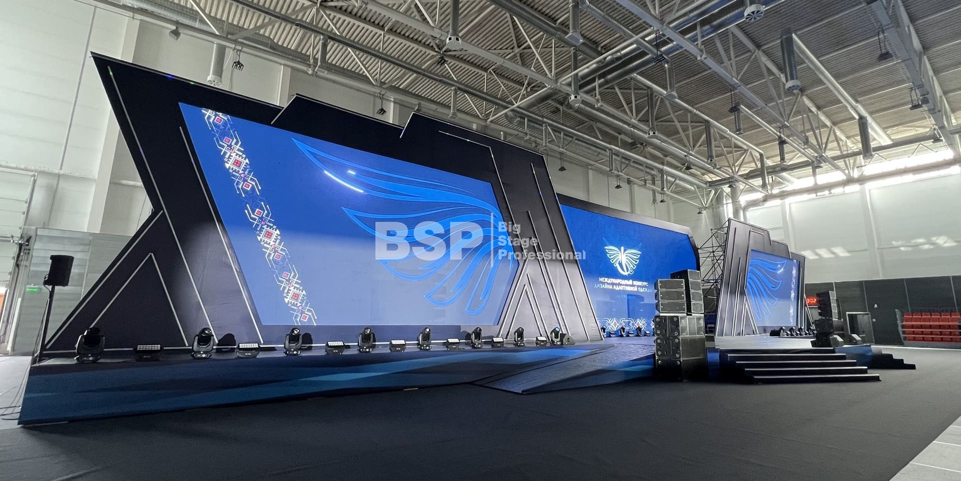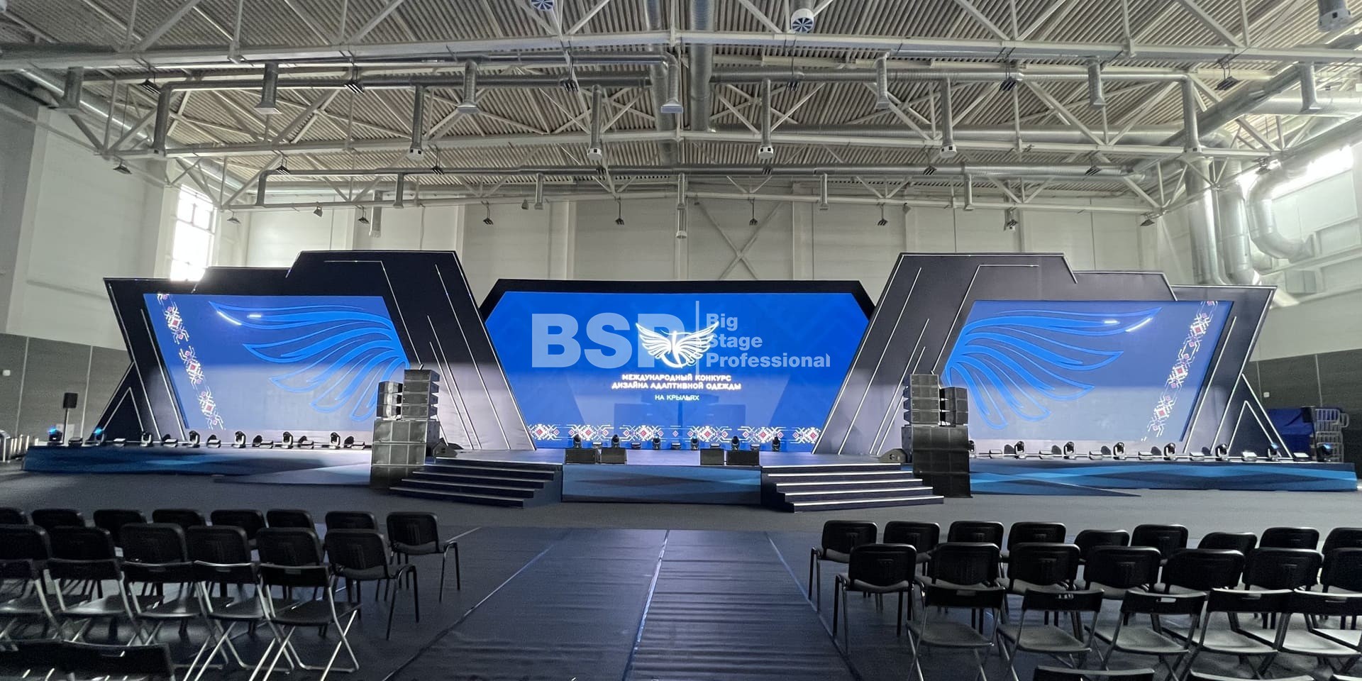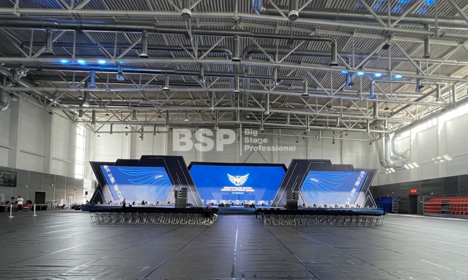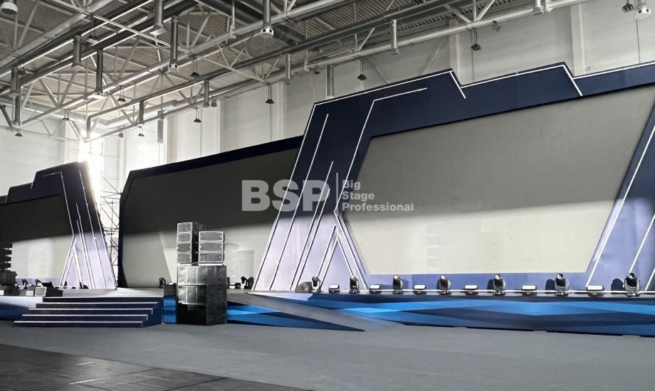 В многофункциональном центре кампуса УрФУ мы установили сценический комплекс шириной более 40 метров с пандусами, световое и звуковое оборудование.