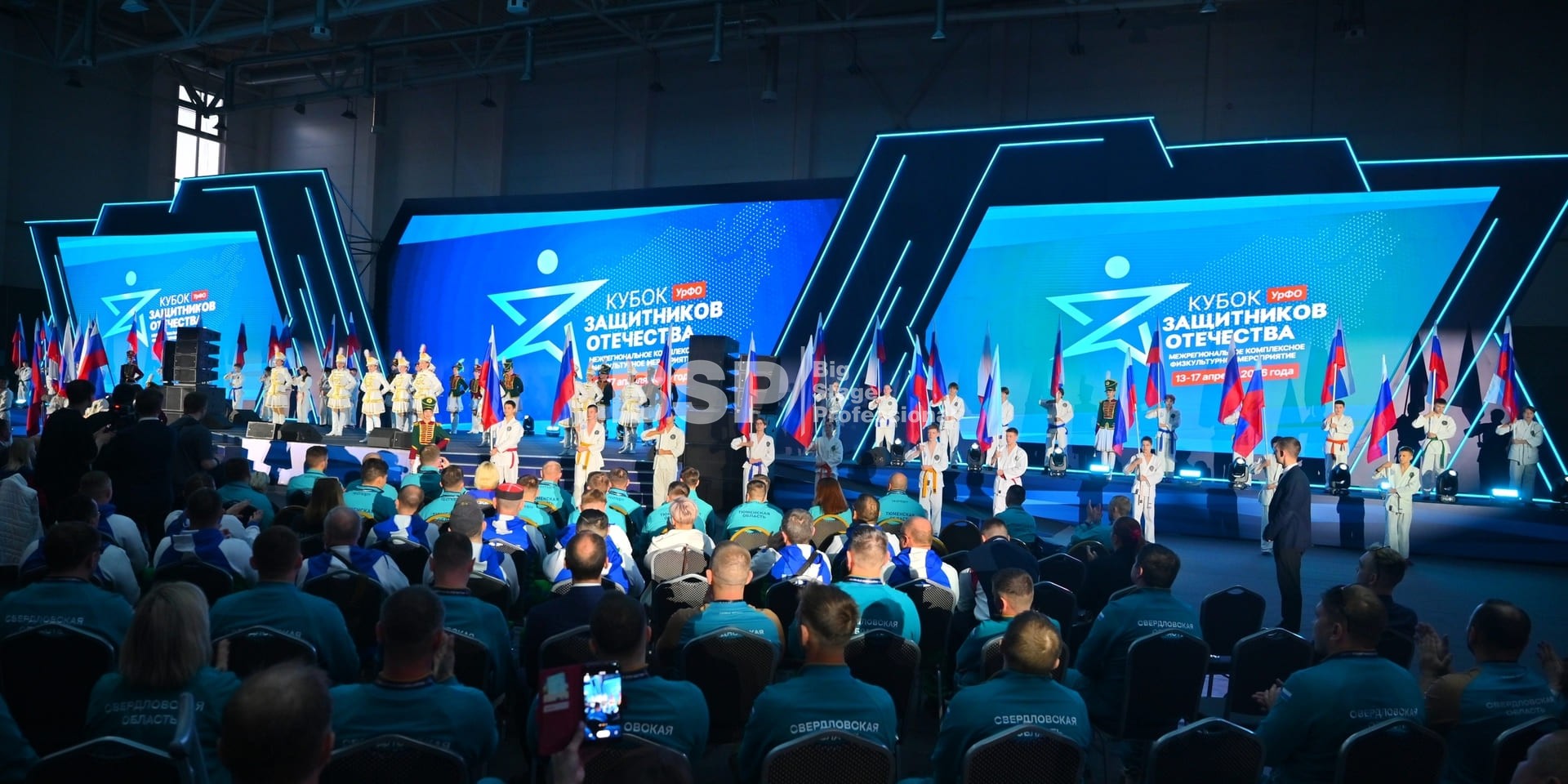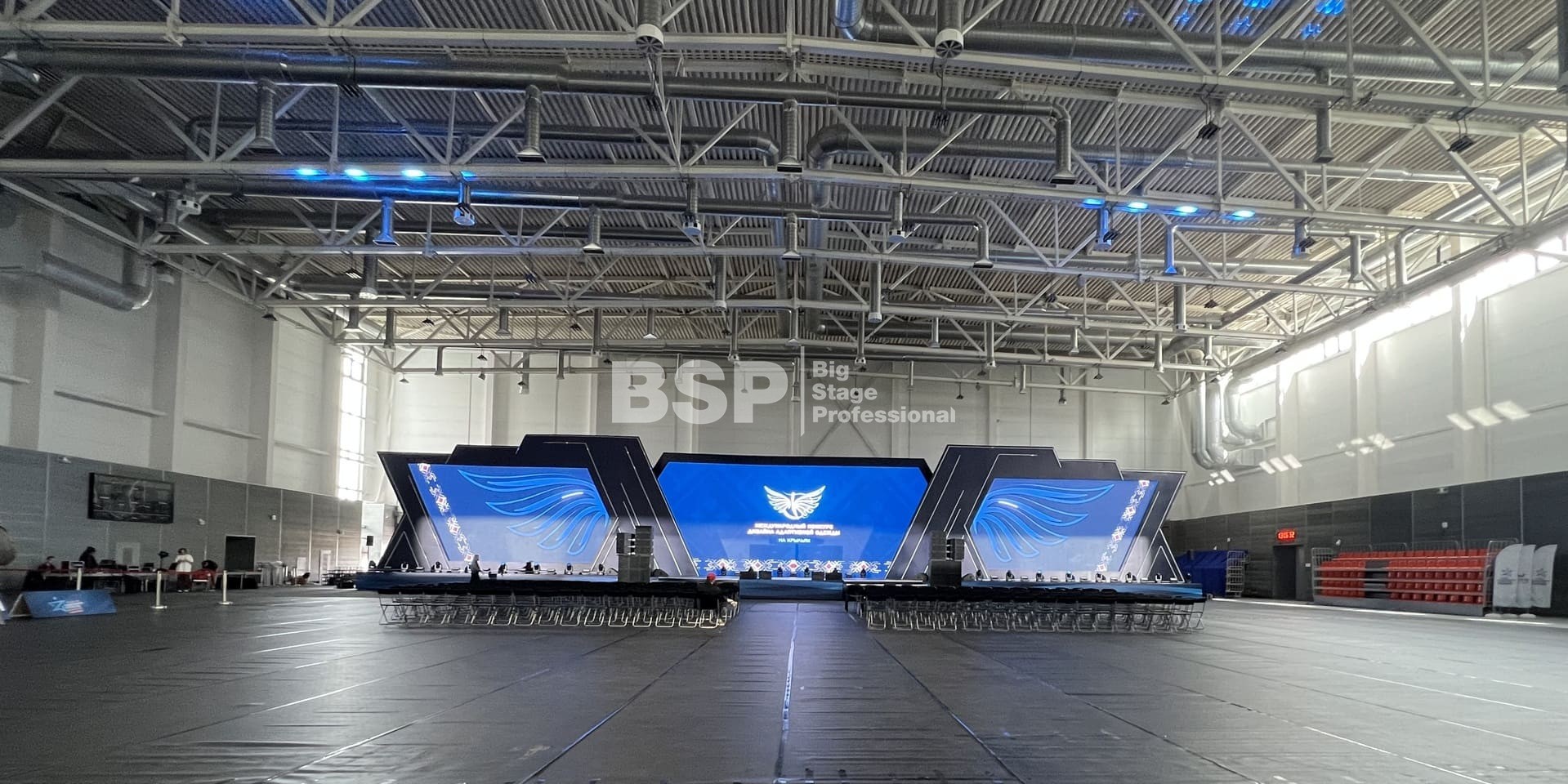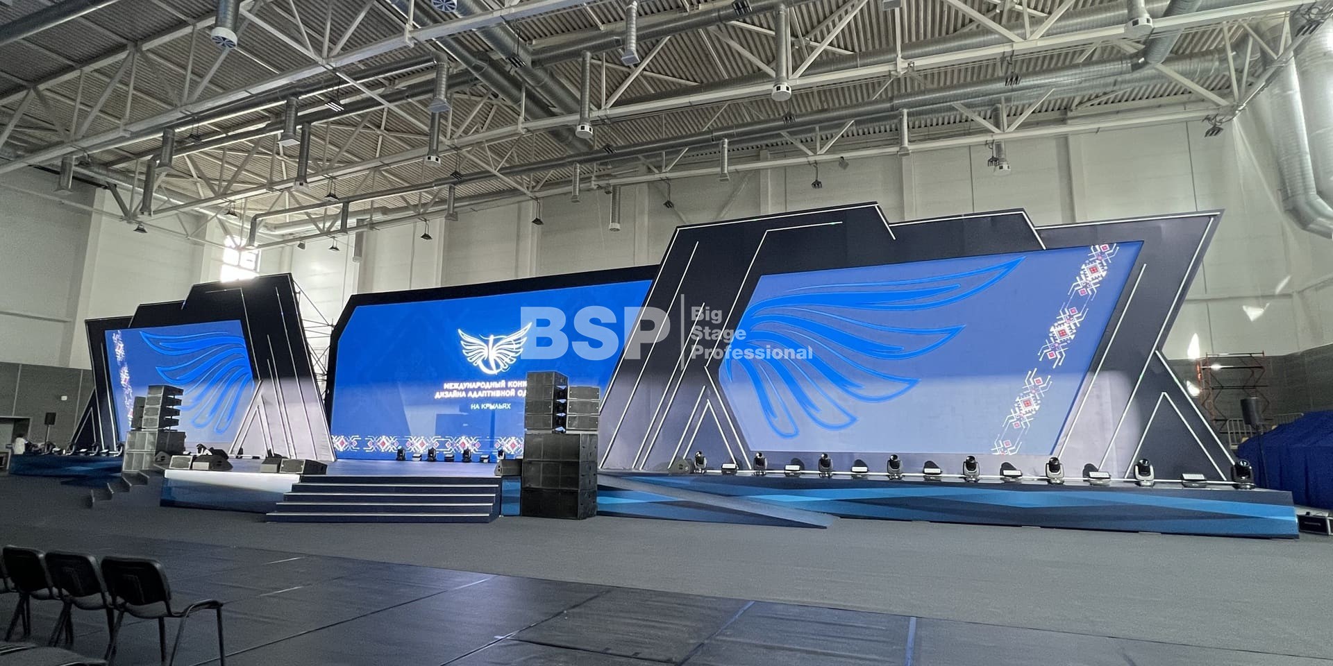 В многофункциональном центре кампуса УрФУ мы установили сценический комплекс шириной более 40 метров с пандусами, световое и звуковое оборудование.