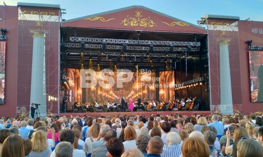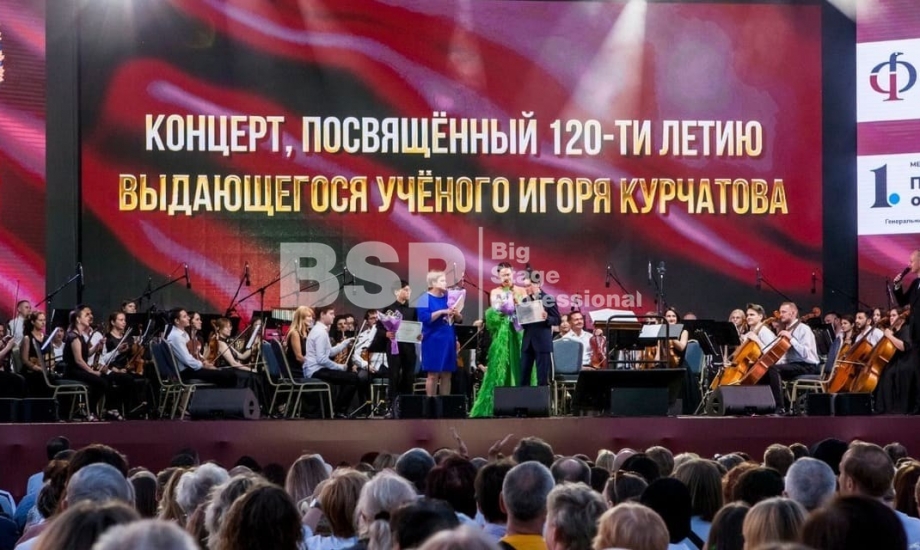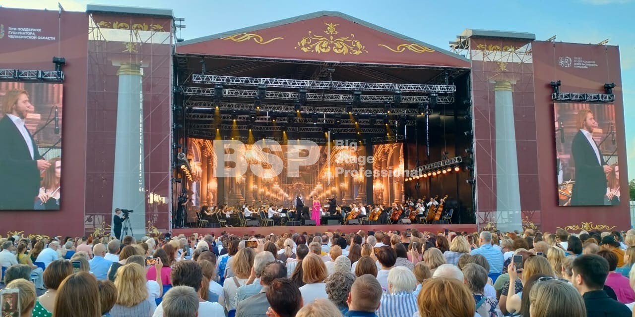 На открытой площадке около памятника Курчатову выступила мировая звезда оперной сцены Аида Гарифуллина. Мы установили сцену, которая была декорирована в стиле театрального зала и имела множество конструкций для установки светодиодных экранов. Также мы смонтировали партер почти на 3500 мест, двухуровневую пультовую, две нестандартные платформы для видеооператоров и предоставили мобильные ограждения.
