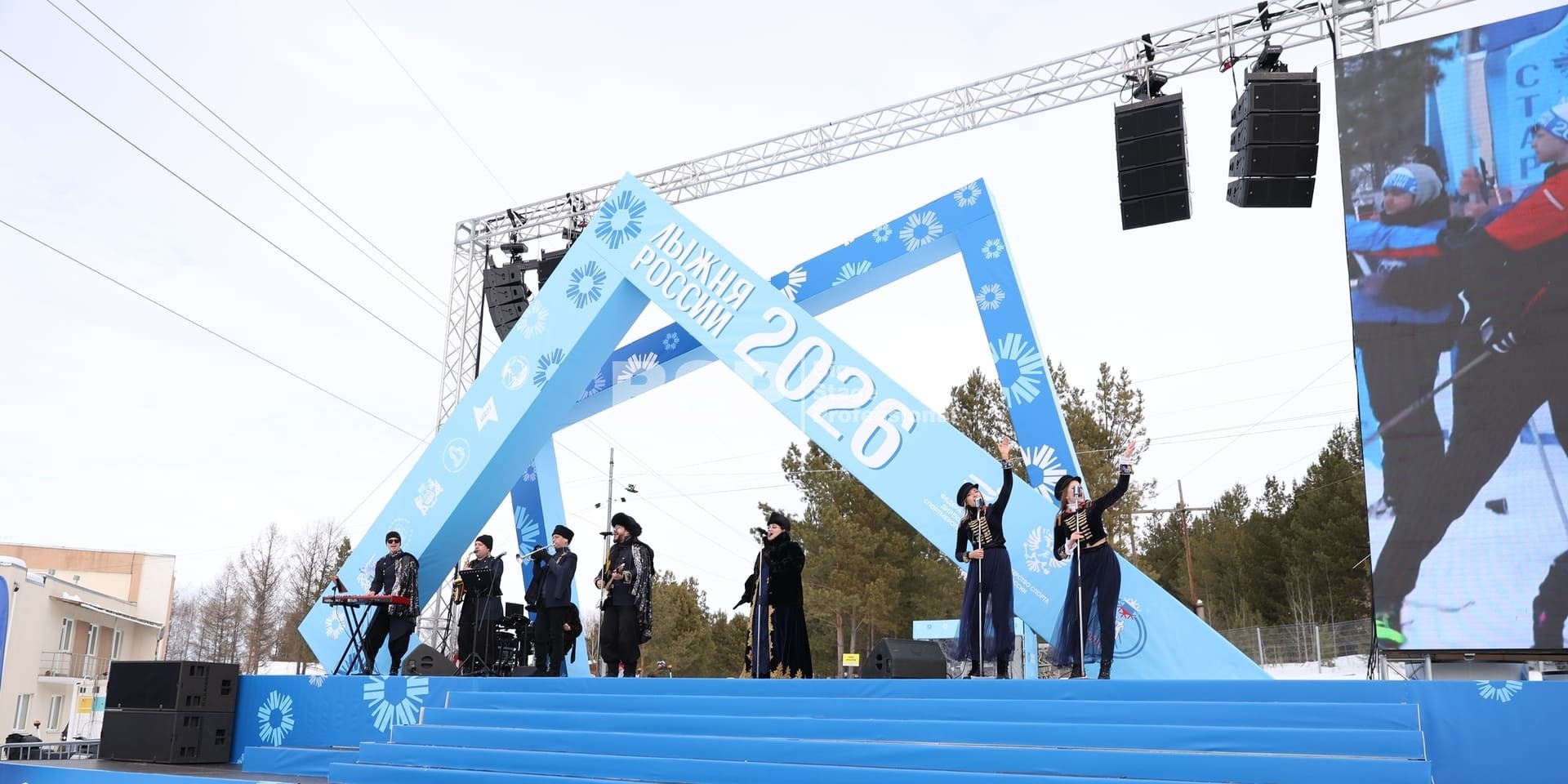 На площадке спортшколы имени Я.И. Рыжкова в Сысерти мы возвели нестандартный сценический комплекс, лёгкий вариант без крыши с одним вертикальным экраном, декорированный рамками, напоминающими фоторамку и стартовую арку одновременно. Такие необычные декорации добавили сцене динамики и подчеркнули спортивную тематику мероприятия. Также мы установили стартовые и финишные столбы, пультовую, партикабль и предоставили звуковое оборудование.