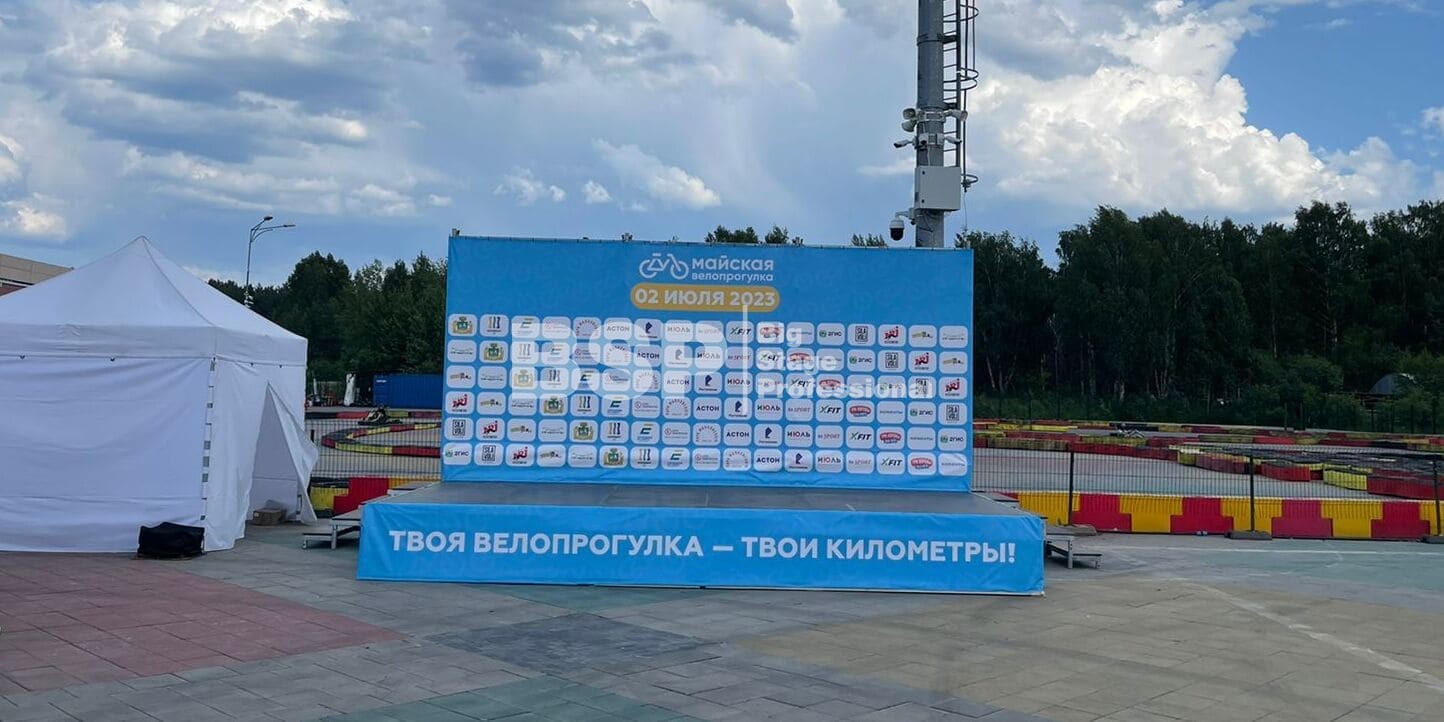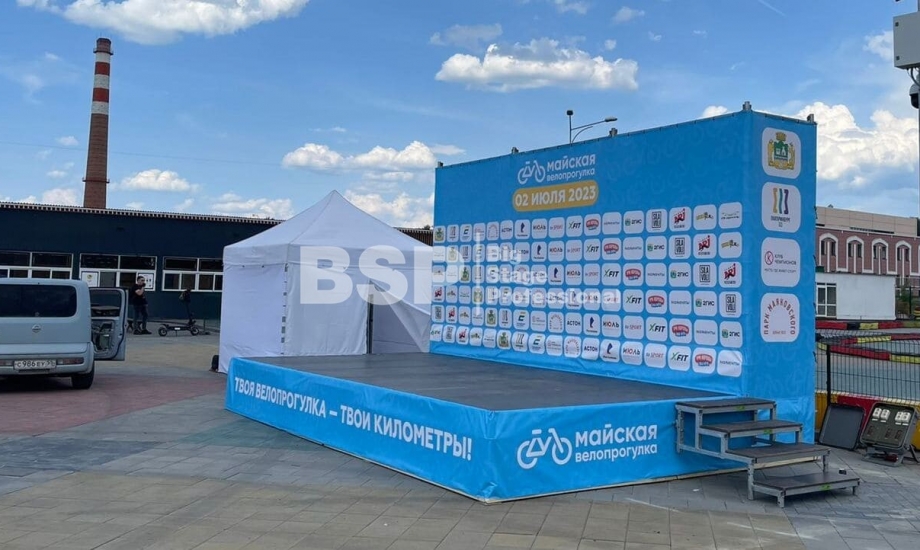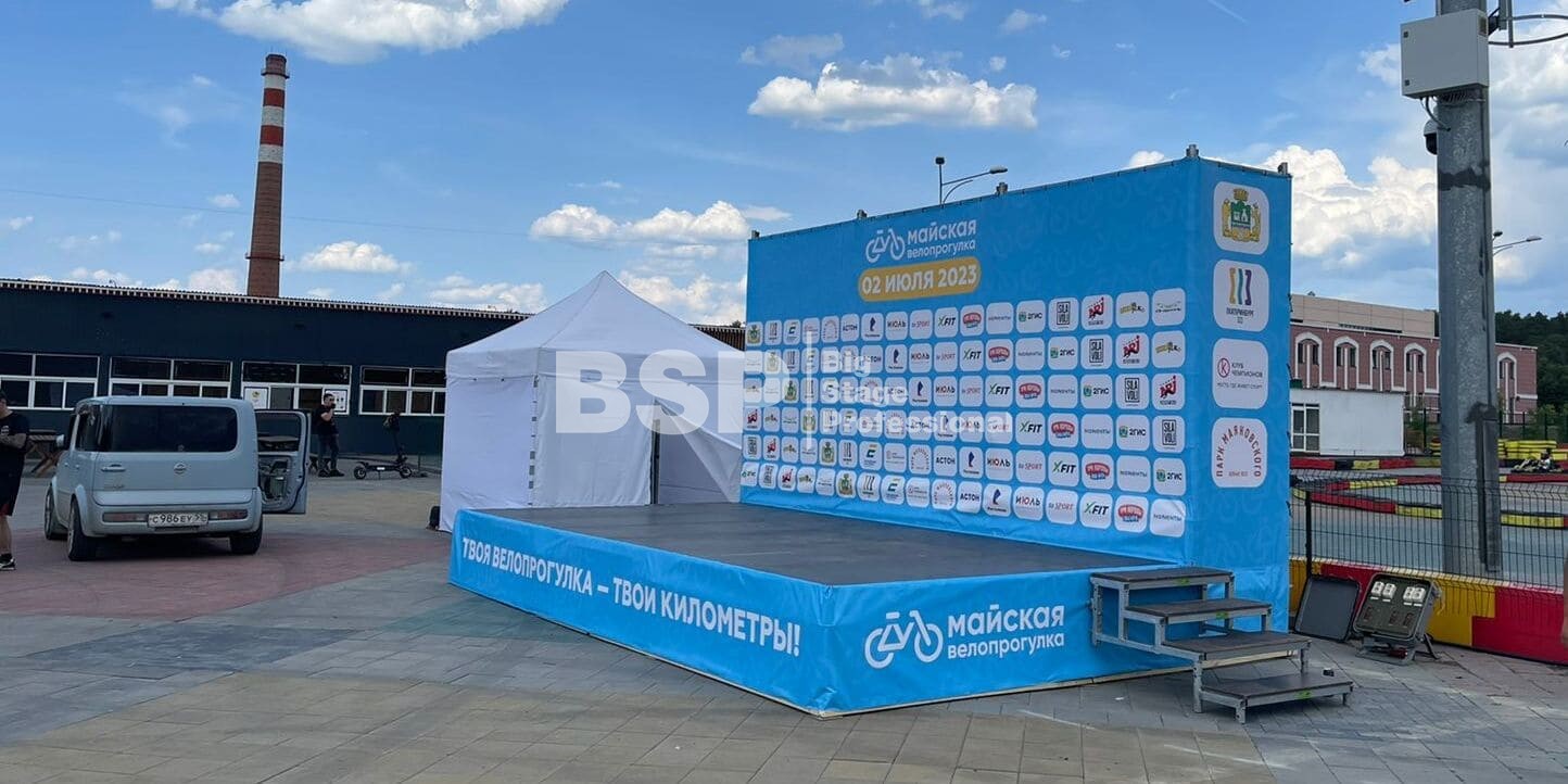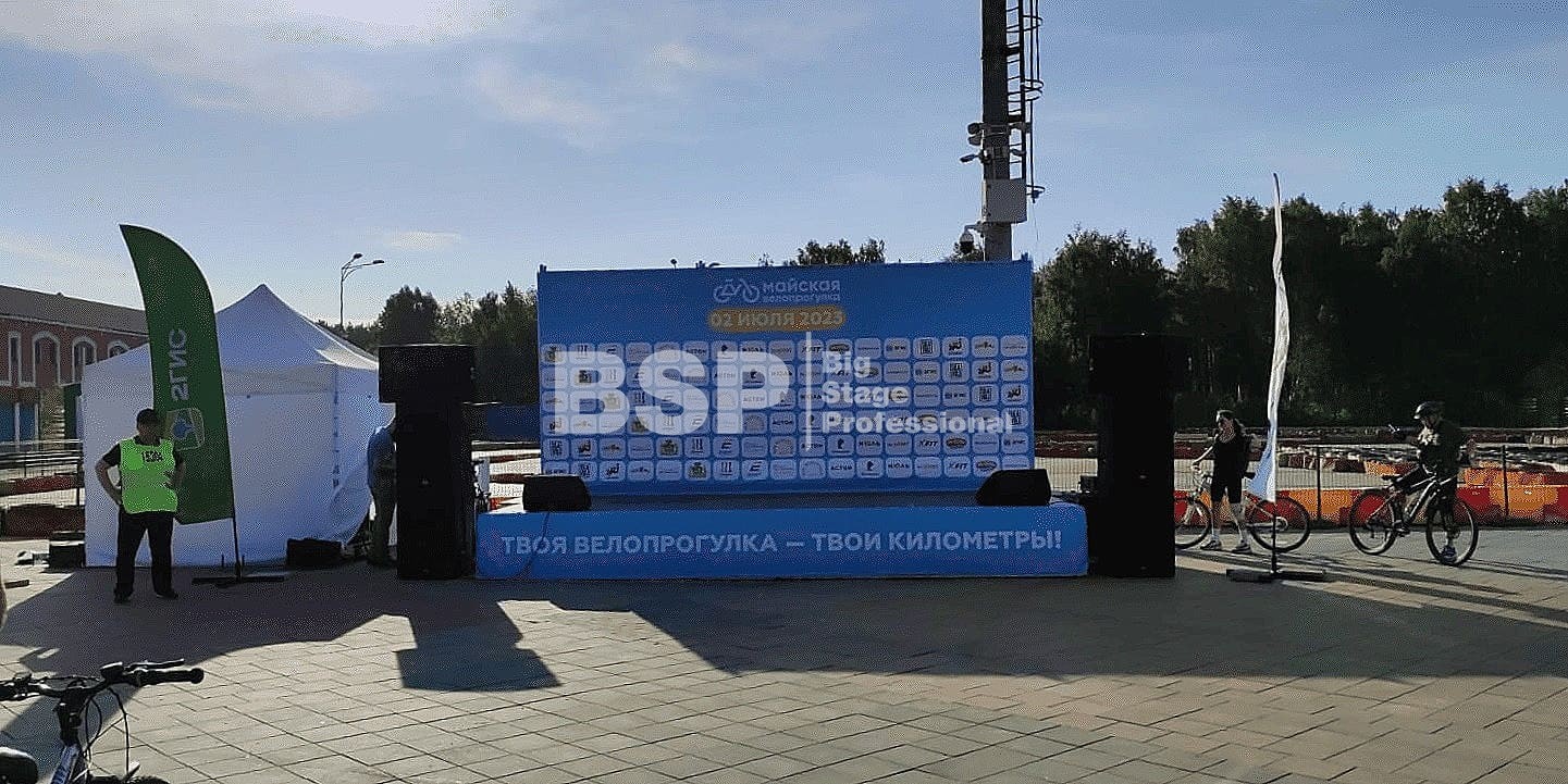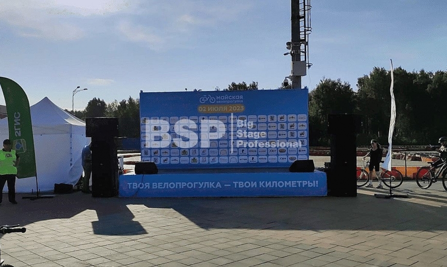 В парке им. Маяковского мы установили сценический планшет с брендированным задником и предоставили звуковое оборудование.