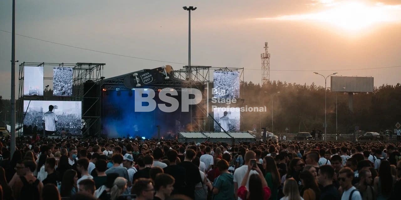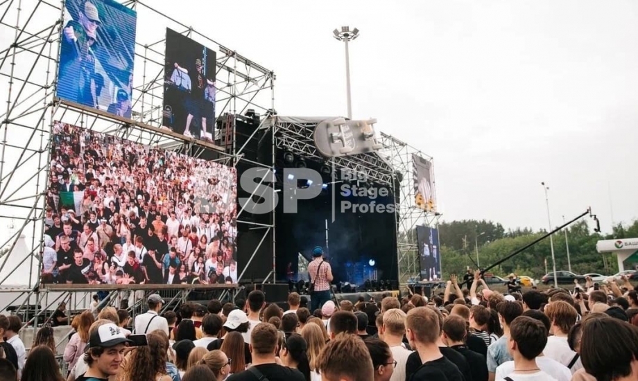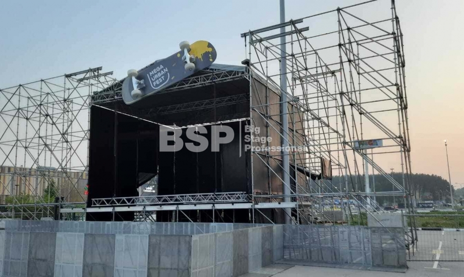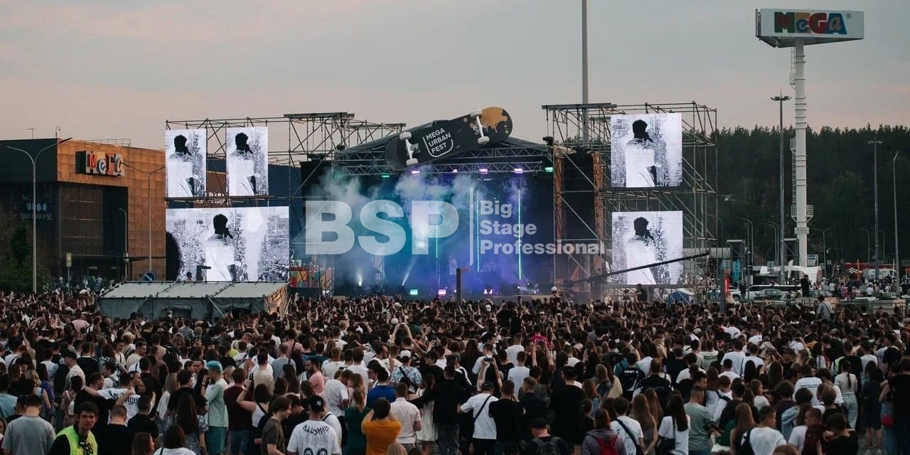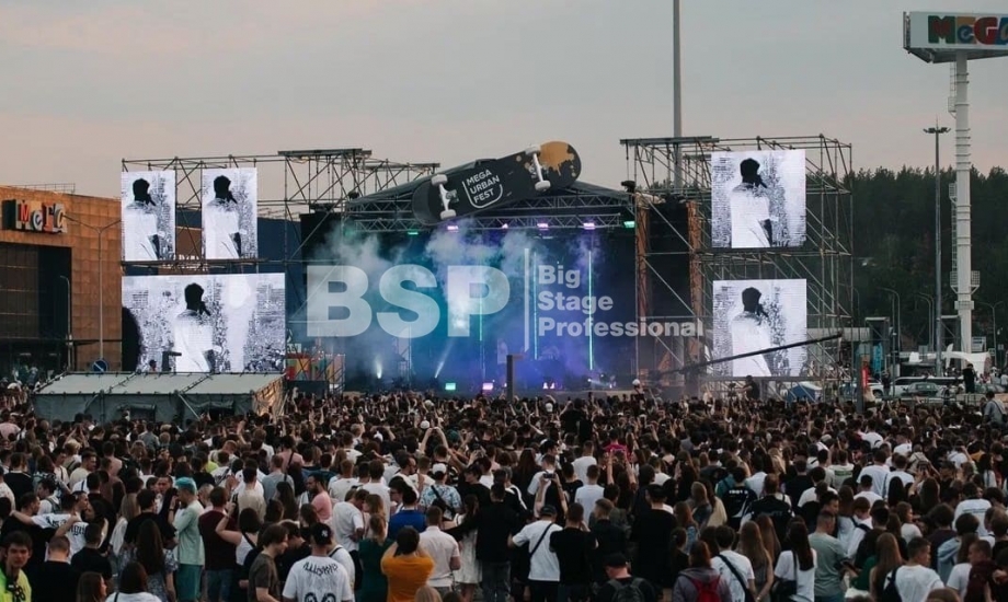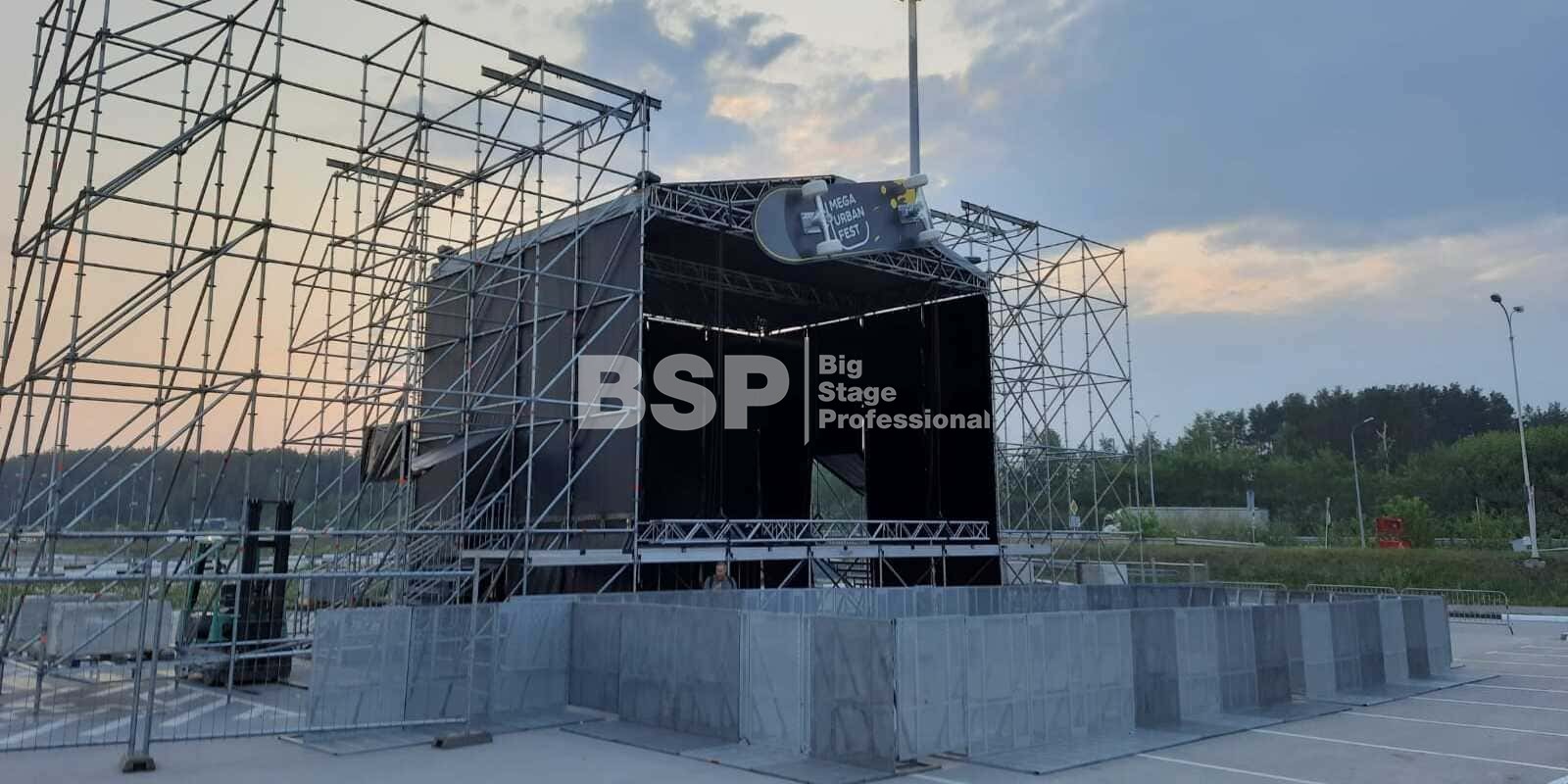На площадке у ТРЦ "Мега" мы установили сценический комплекс, пультовую, трибуну без сидений и конструкцию в фотозоне. Предоставили различные ограждения