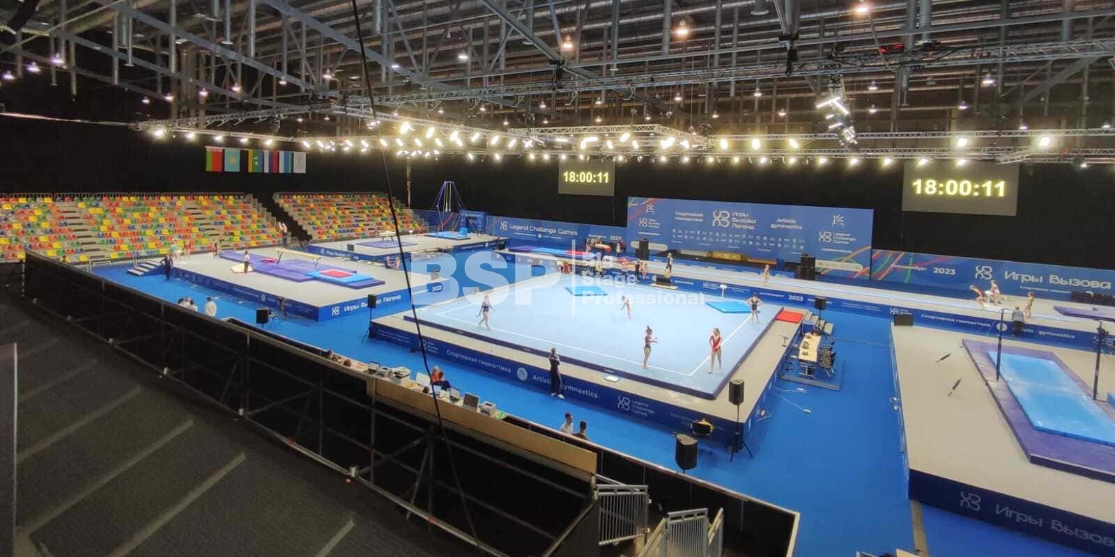 - гимнастические помосты для трех видов состязаний общей площадью более 2000 кв.м.,