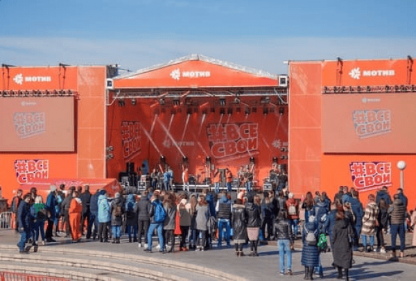 Мы установили сценический комплекс с конструктивом для четырёх светодиодных экранов и подиумом для DJ’s, двухуровневую пультовую. Предоставили множество различных ограждений.