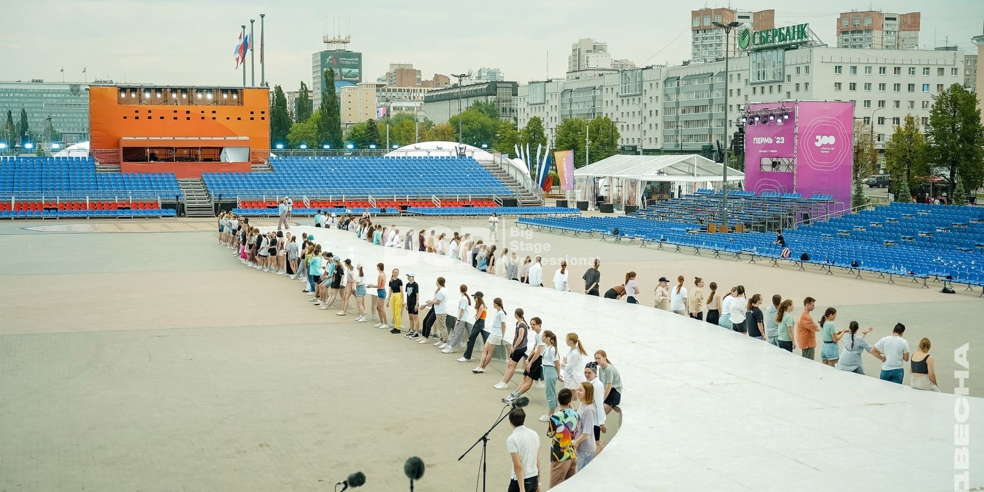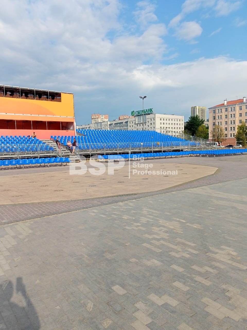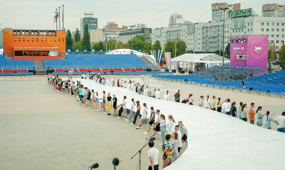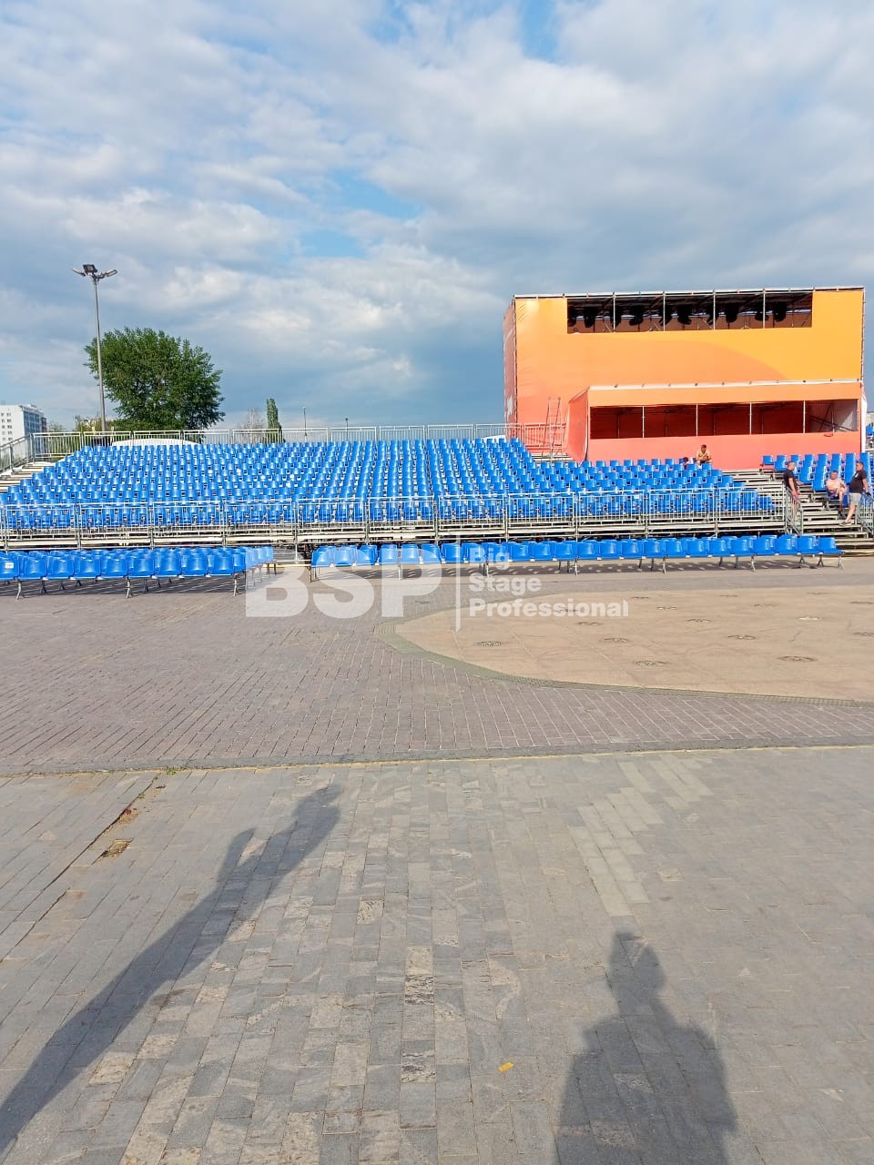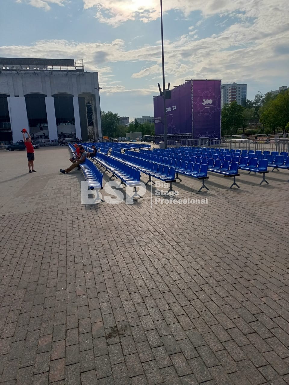 Открытие «Студвесны» состоялось 26 мая перед Театром-Театром, где нами были установлены зрительские трибуны и партер более чем на 3000 мест вместе взятые. Самая большая трибуна имела встроенную пультовую, также возведенную нами.