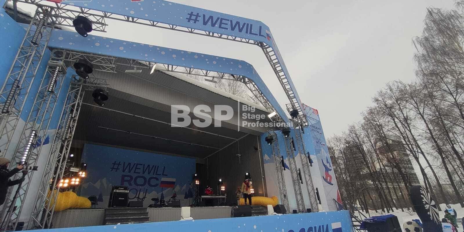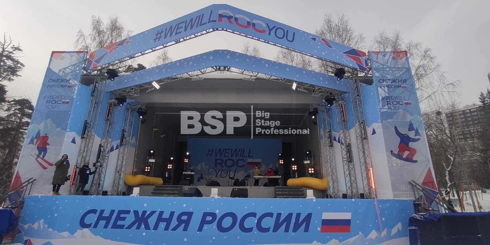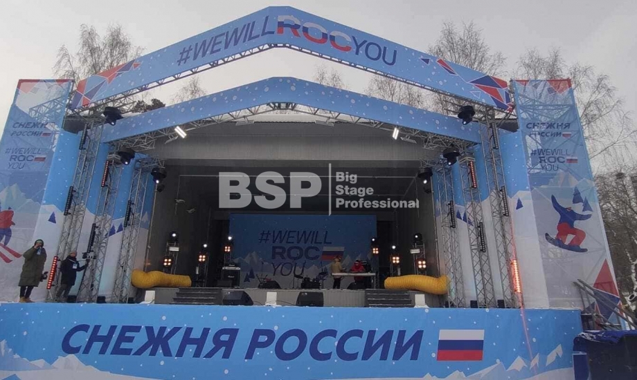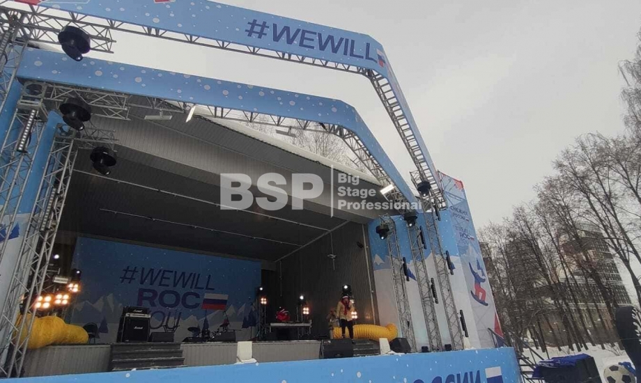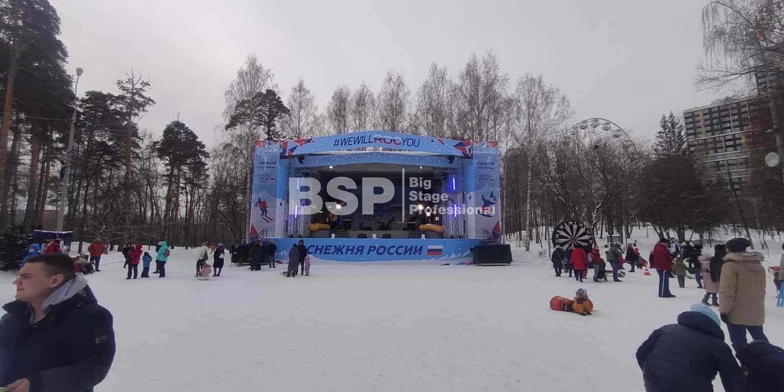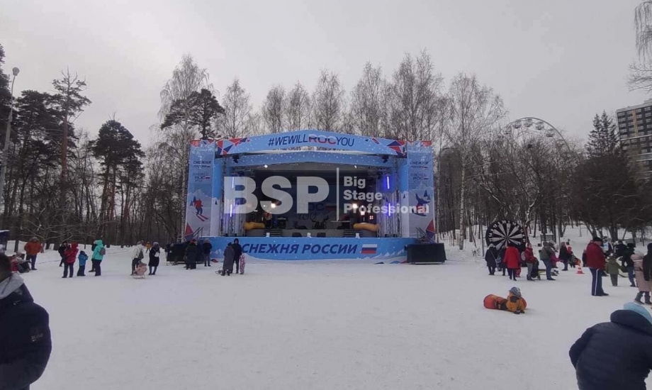 В ЦПКиО им. Маяковского мы декорировали стационарную сцену парка, установили фермовые конструкции, предоставили световое и звуковое оборудование.