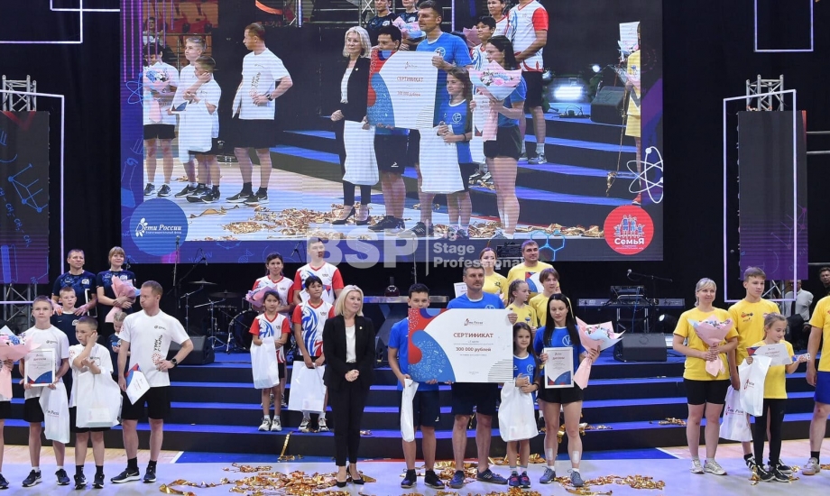 Во Дворце спорта УГМК мы установили сценический подиум с лестницей по всей длине, декорировали сцену фермовыми конструкциями и LED PIXEL STICK.