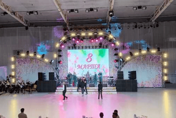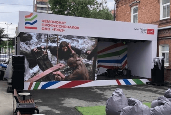 Нам доверили установку сценического планшета с шатром из фермовых конструкций, в котором проходил праздник. Внутри шатра нами был установлен еще один подиум, для артистов и граунд для светового и звукового оборудования. Также мы смонтировали конструктив лестницы в церемониальной зоне.