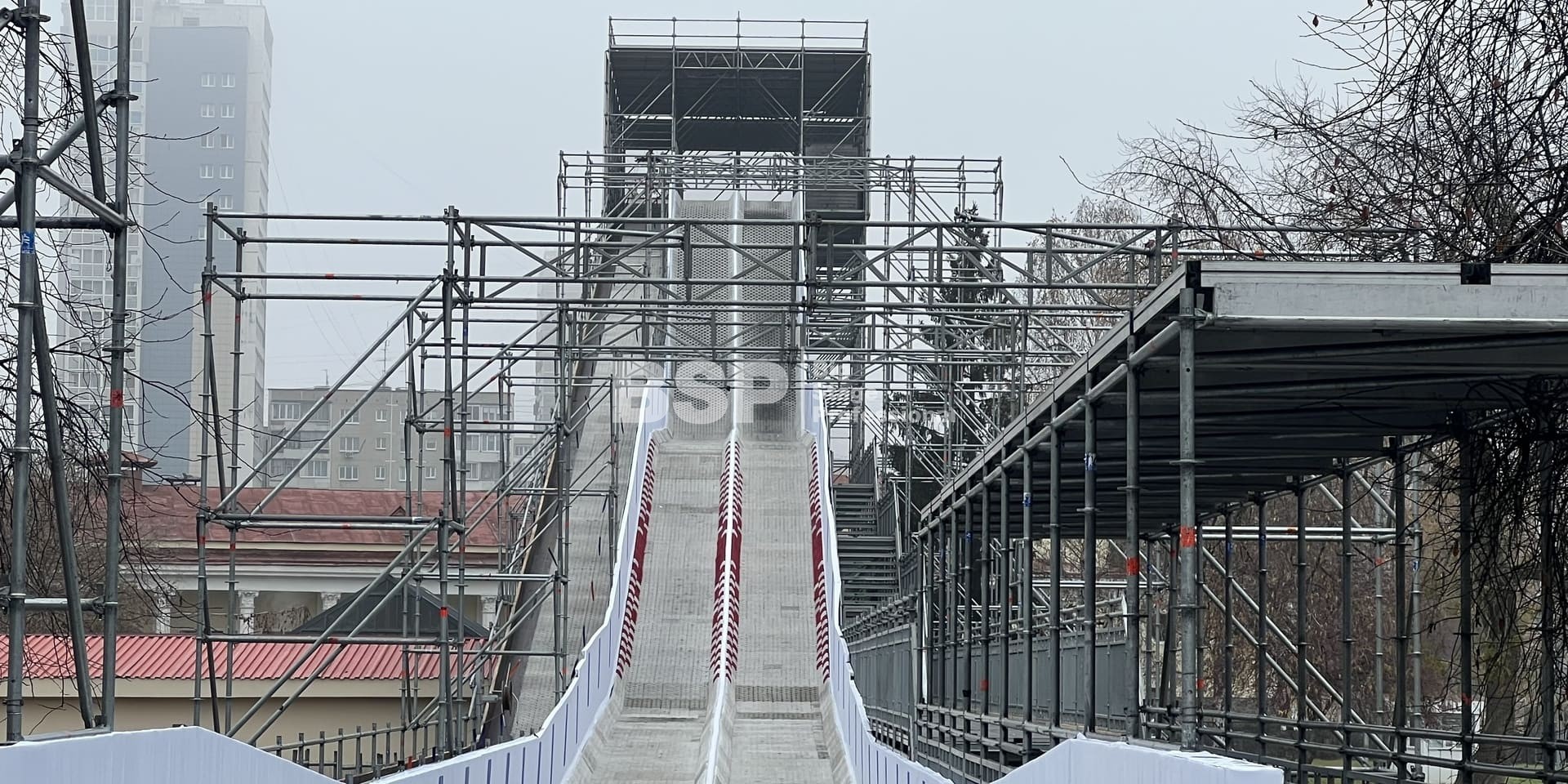 Зимний аттракцион сделан без использования льда. Вместо него специальное резиновое покрытие, по которому можно кататься даже при плюсовых температурах. На горке используются специальные тюбинги, подъемник доставляет их наверх. Для обладателей абонементов существует отдельный быстрый проход на стартовую площадку. Имеются конструкции для светового оборудования, которое тоже установлено нами.