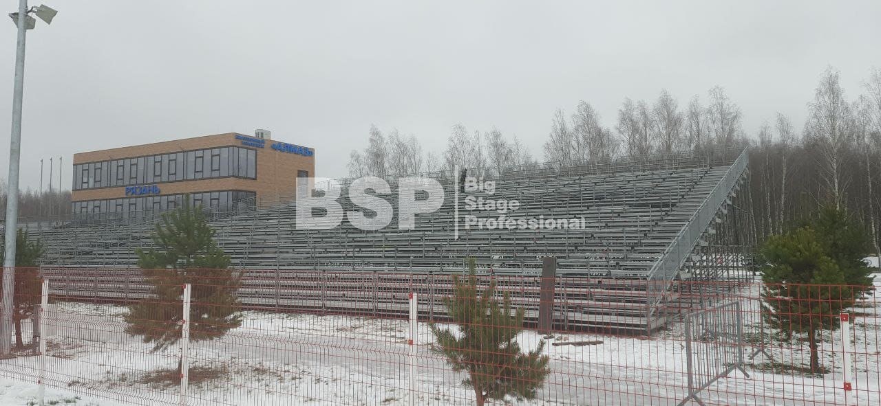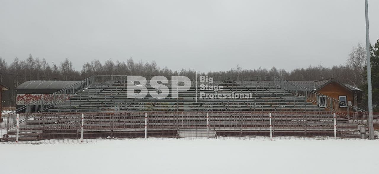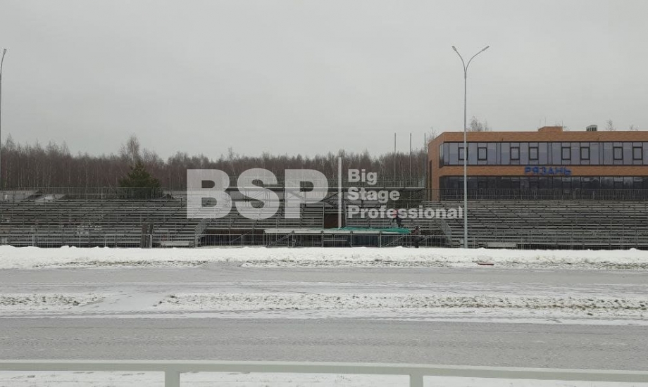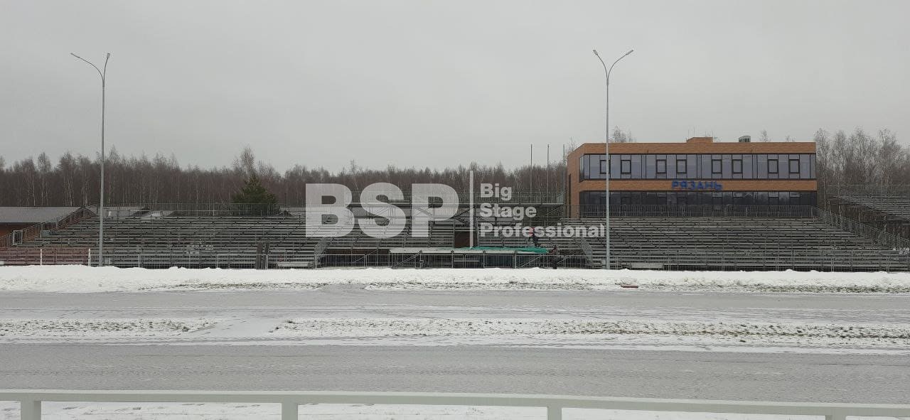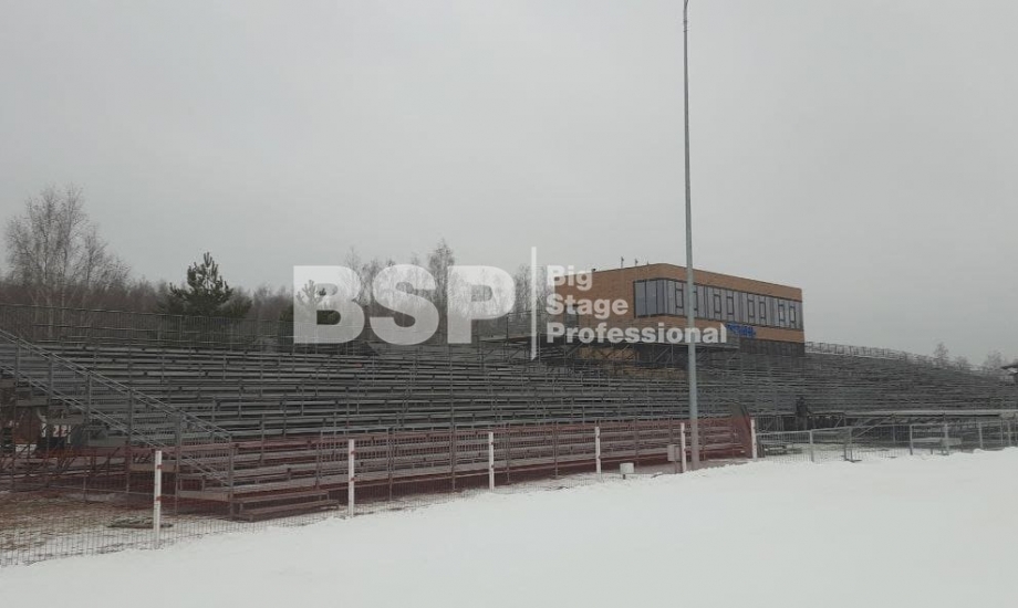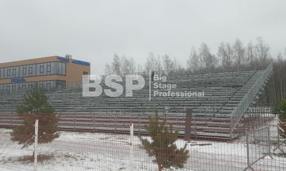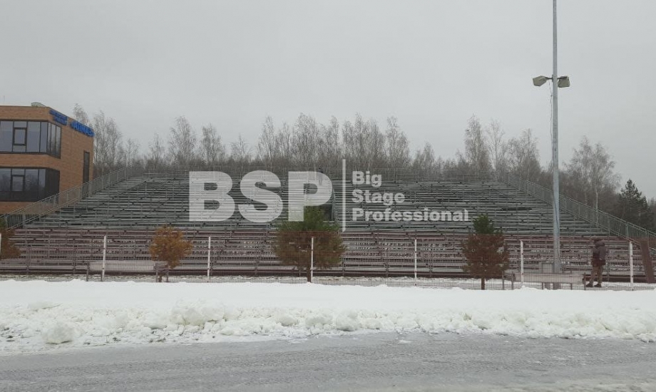 На биатлонном комплексе "Алмаз" нами был установлен трибунный комплекс c планшетом, конструкция для экрана, камерные платформы и мост над лыжной трассой.
