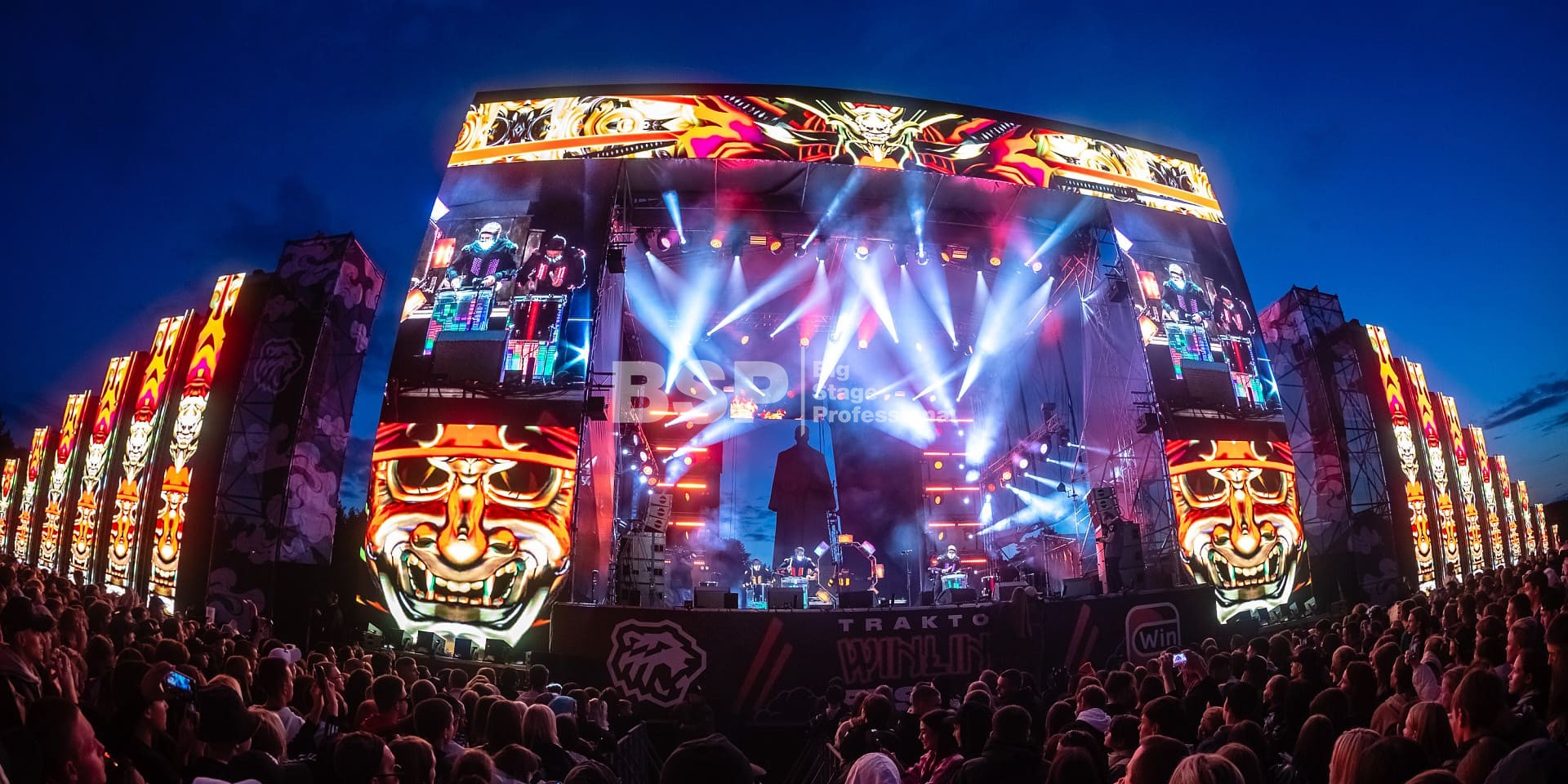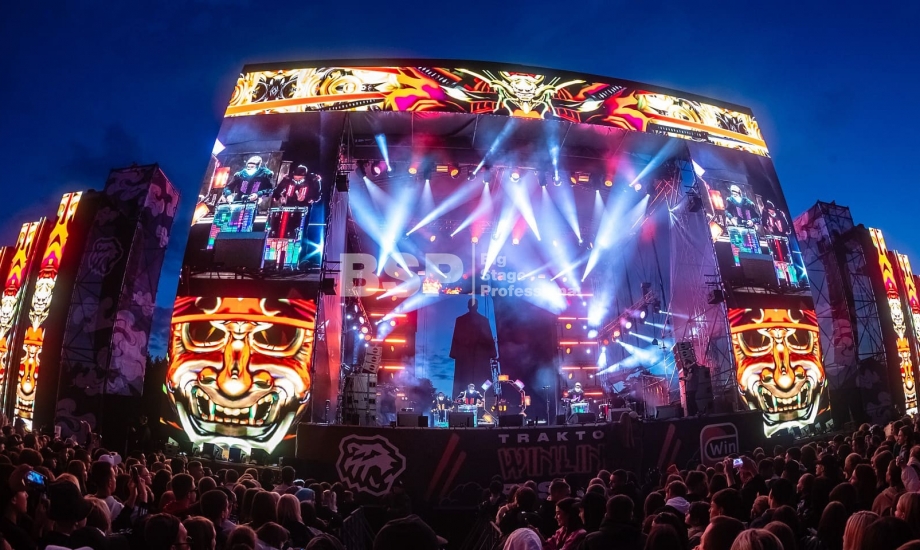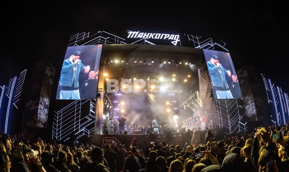 У памятника Игорю Курчатову мы, совместно с партнёрами, создали огромную мультимедийную сцену, наполненную мощным светом и звуком, установили пультовую.