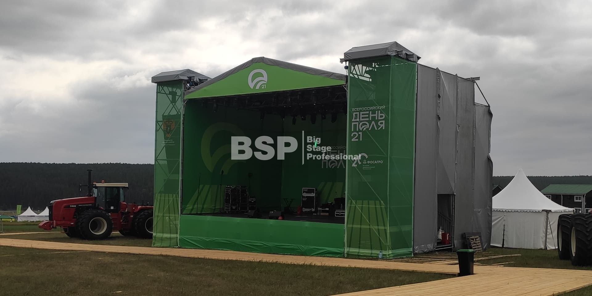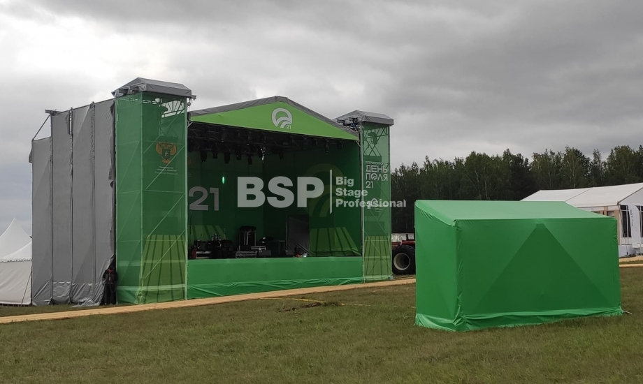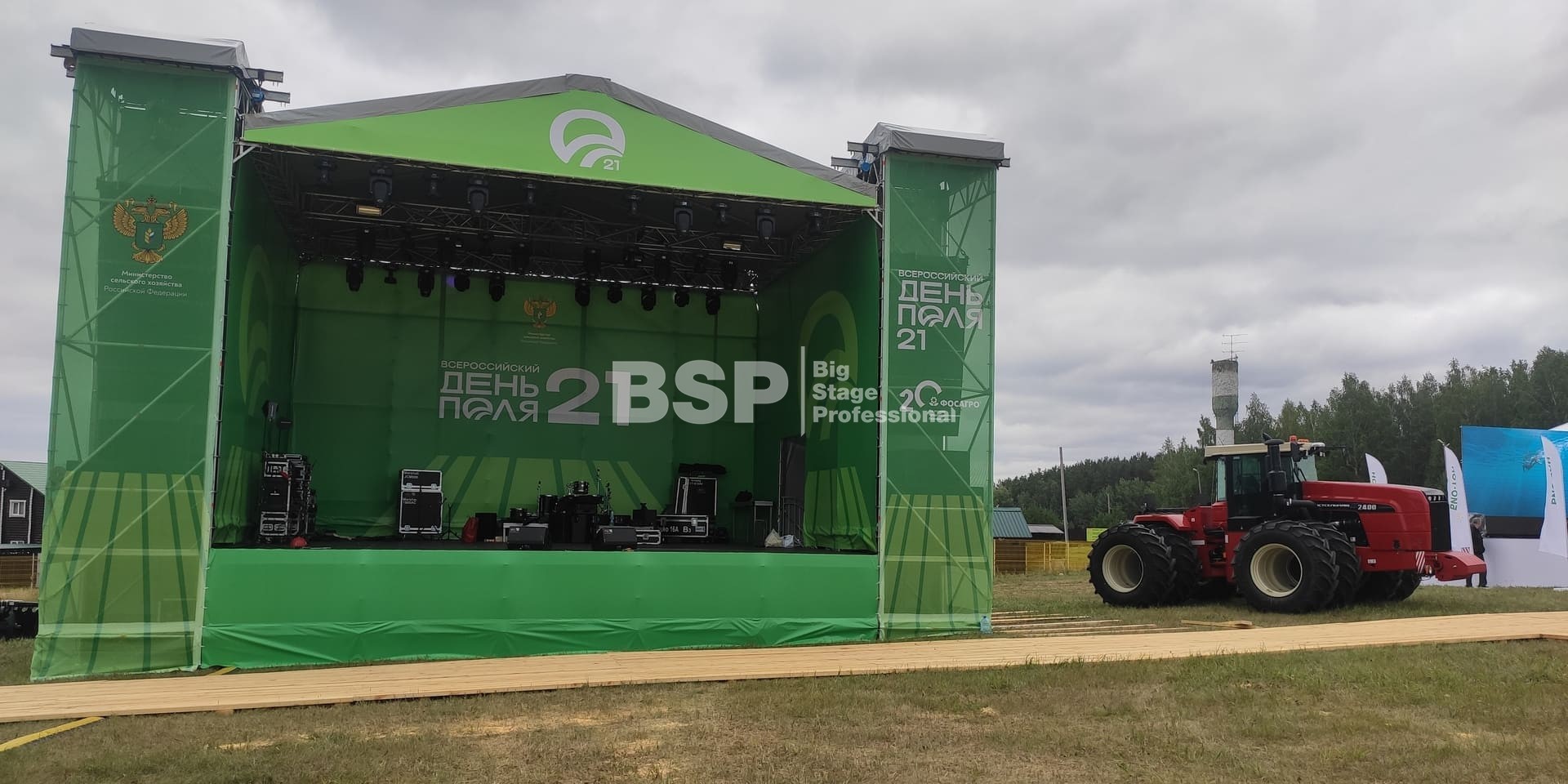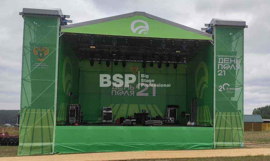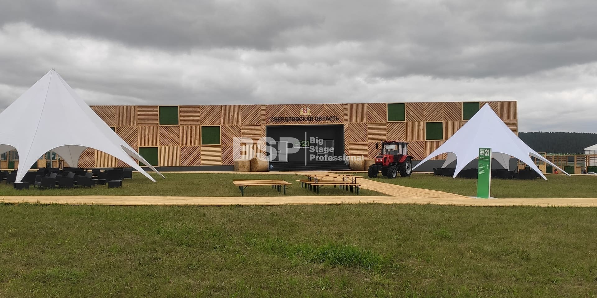 На территории загородного клуба «Белая лошадь» мы установили павильон, в котором располагались предприятия сельского хозяйства Свердловской области, возвели сценический комплекс, пультовую, входную арку, оснастили сцену световым и звуковым оборудованием, предоставили ограждения.