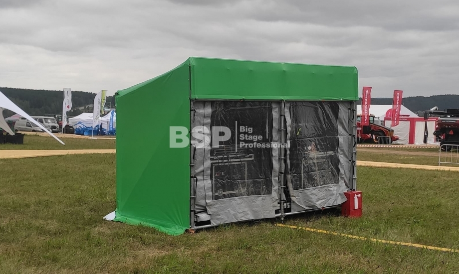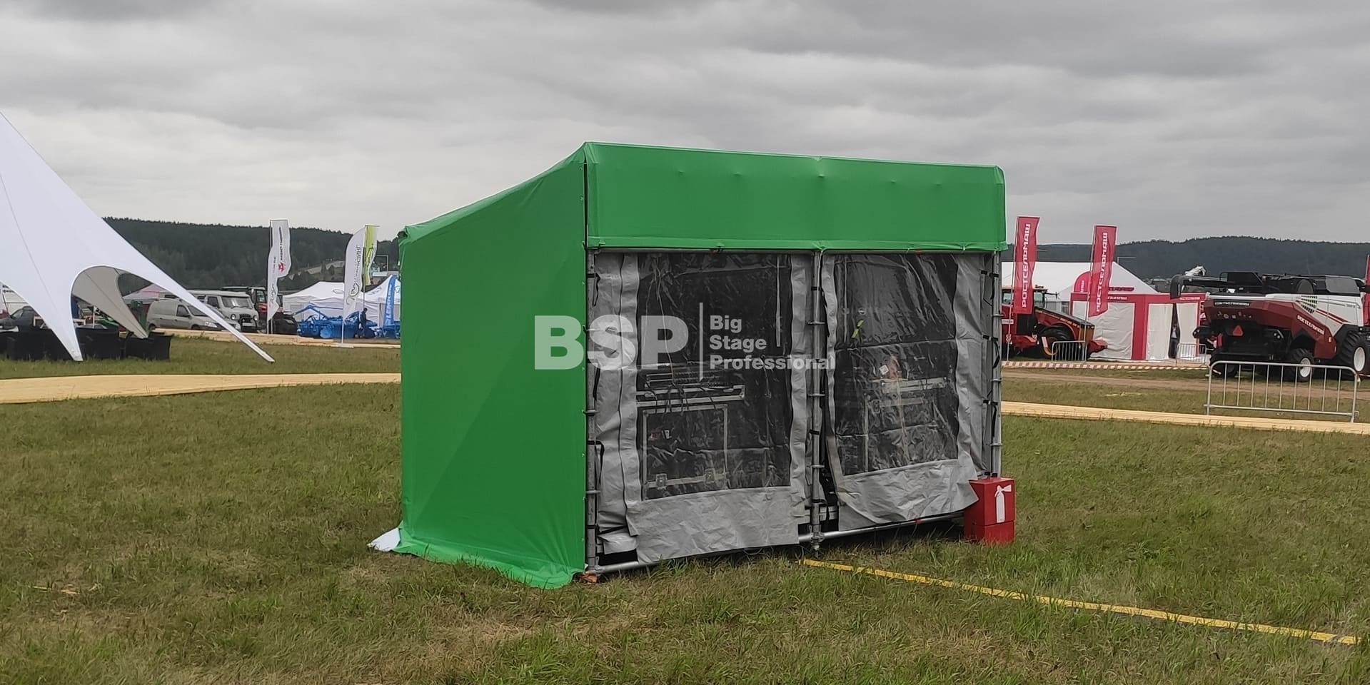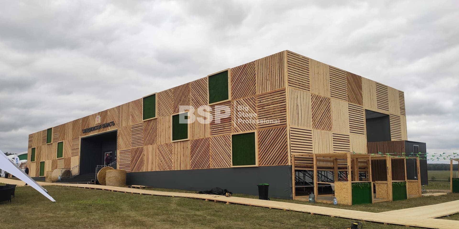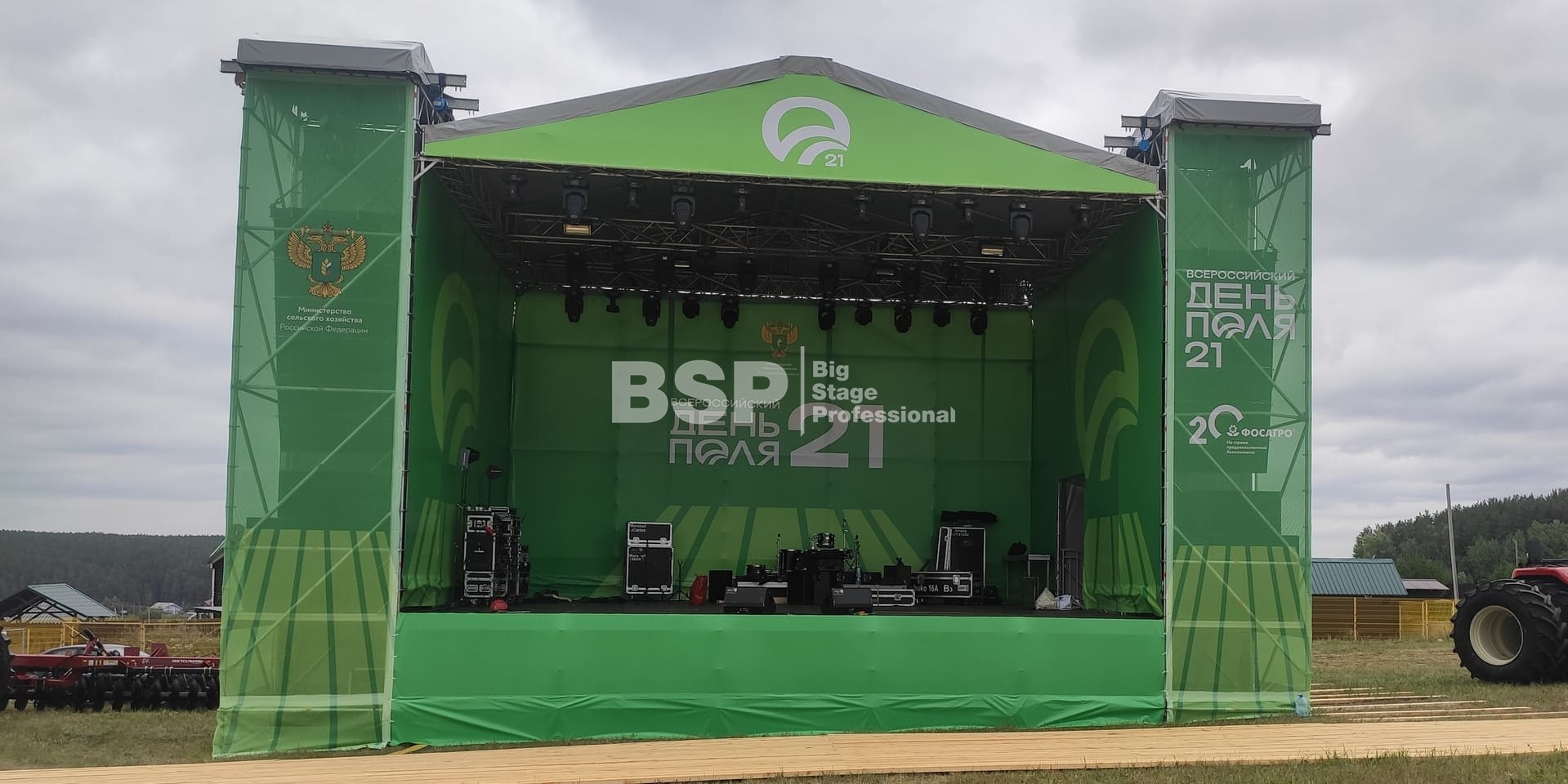 На территории загородного клуба «Белая лошадь» мы установили павильон, в котором располагались предприятия сельского хозяйства Свердловской области, возвели сценический комплекс, пультовую, входную арку, оснастили сцену световым и звуковым оборудованием, предоставили ограждения.