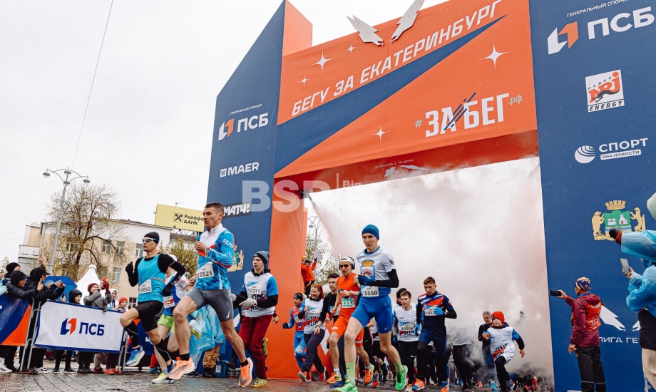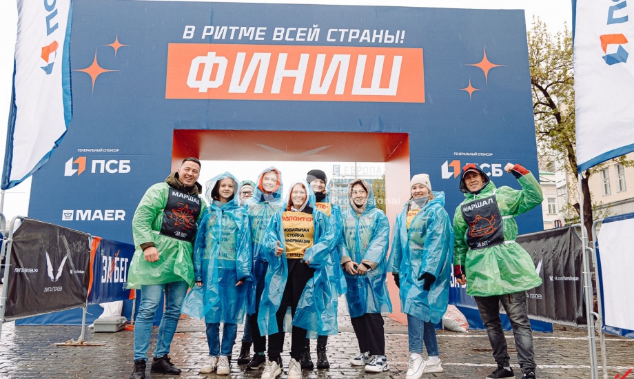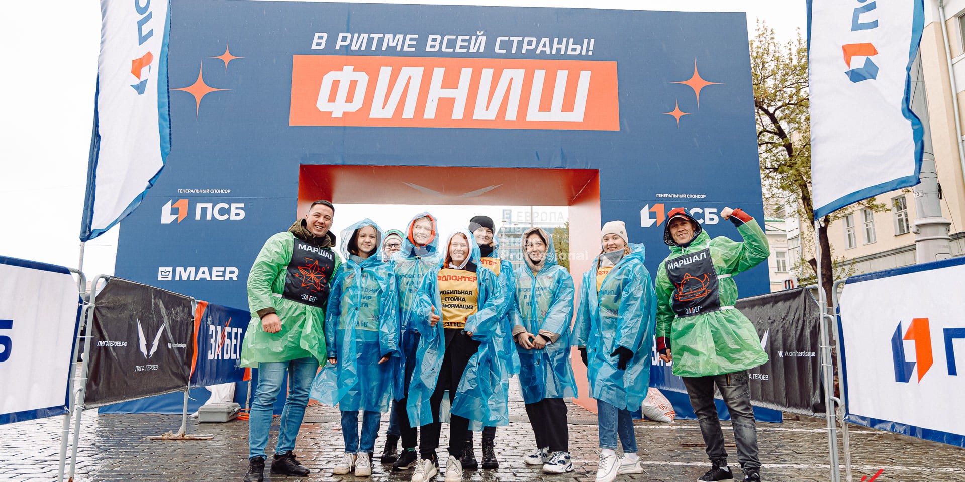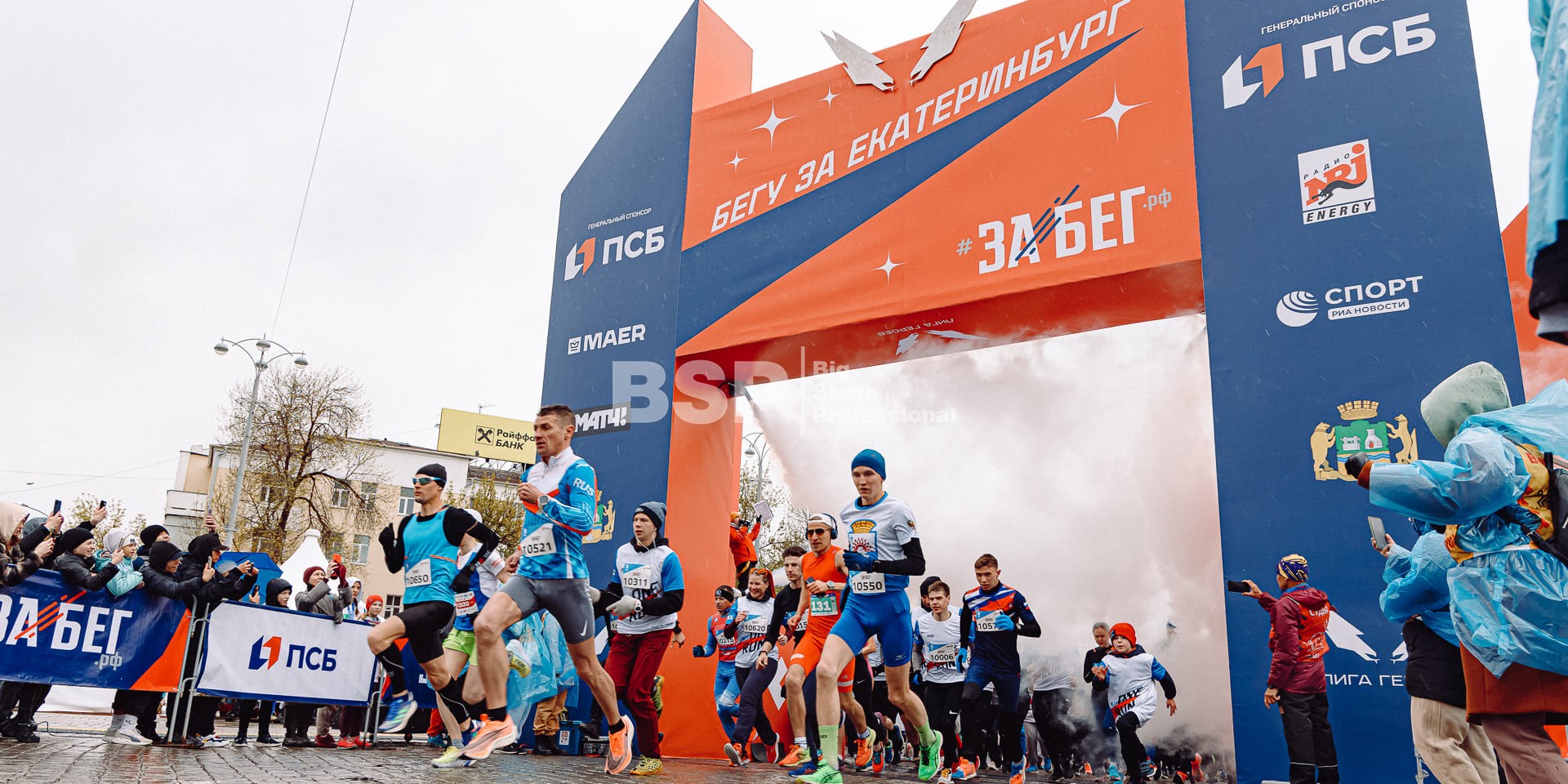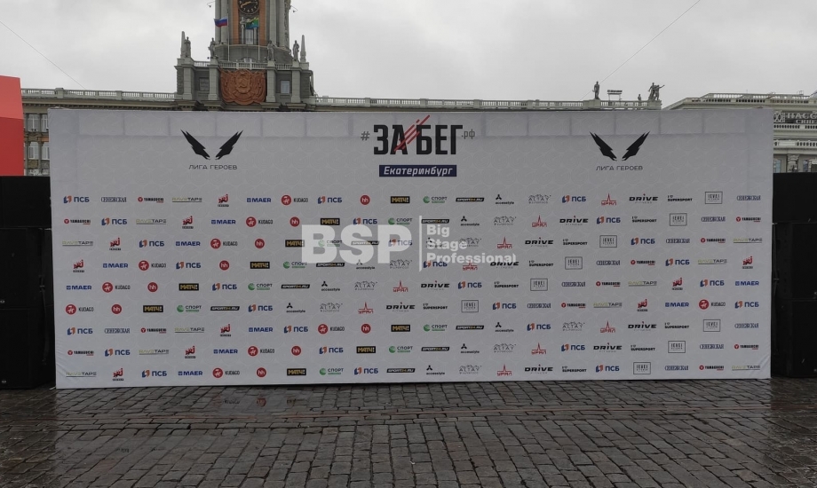 На Площади 1905 года мы установили стартовую арку совмещенную с двумя небольшими сценическими планшетами, финишную арку, двухстороннюю конструкцию для фото-видео зоны, гардероб, а также оснастили полумарафон звуковым оборудованием.